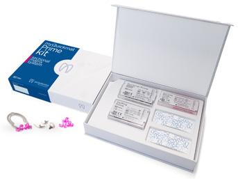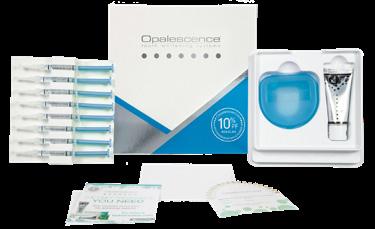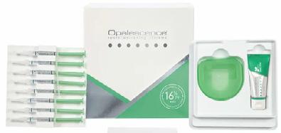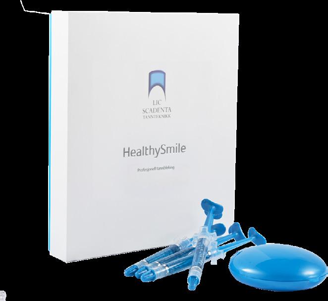 Eksklusiv eske med 2 blekeskinner, 4 blekesprøyter, 1 skinneetui samt instruksjoner til pasienten.