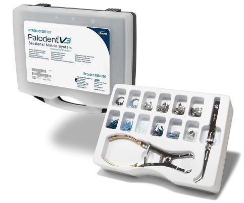 Inneholder: 1 universal ring og 1 smal ring, 4 x 25 matriser i str. 3,5 mm, 4,5 mm, 5,5 mm og 6,5 mm, 3 x 25 kiler i str. small, medium og large, 3 x 10 stk. WedgeGuard i small, medium og large, 1 tang til ringene og 1 pinsett med spiss