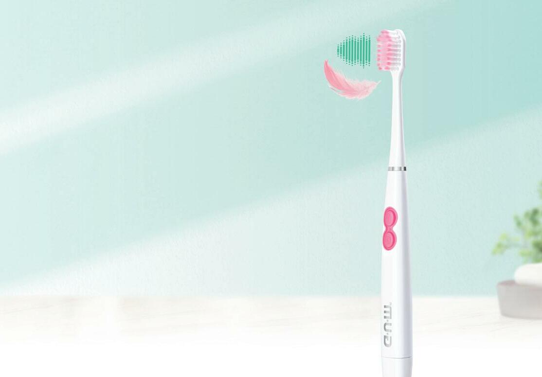 Manuell tannbørste med soniske vibrasjoner, batteridrevet, brukes som manuell tannbørste, med smalt ergonomisk håndtak, børstehoder og batteri kan byttes, sort og hvit.