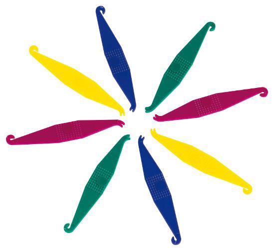 Elastic placer i forskjellige farger for å feste og fjerne strikk.