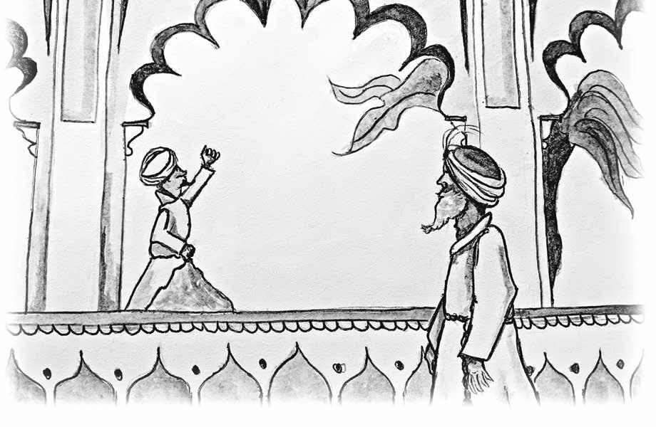 De qualquer maneira, aquele era, sem dúvida, o sítio ideal para descansar naquele dia de tanto calor. Encostou-se ao muro da casa e fechou os olhos. Ficou assim um bocado, meio a dormir, meio acordado. Sentia, com agrado, a suave frescura14 da brisa, o perfume do ar e a música de sonho que vinha de dentro da casa. Passado um pouco, chegou-lhe ao nariz o cheiro apetitoso de vários pratos bem condimentados15, acordando nele uma fome torturante16, que não o largava há já vários dias. Aquela fome não o deixava estar sossegado17 a descansar. Levantou-se. Empurrou o portão do pátio da grande casa. Um palácio, na verdade. Subiu as magníficas escadarias18 . À porta do palácio estavam dois criados. Hindbad perguntou-lhes o nome do dono daquilo tudo.