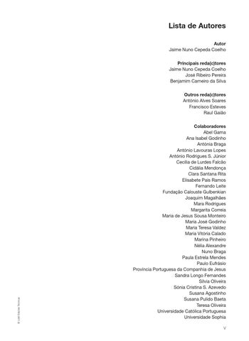 Outros reda(c)tores António Alves Soares Francisco Esteves Raul Gaião Colaboradores Abel Gama Ana Isabel Godinho Antónia Braga António Lavouras Lopes António Rodrigues S. Júnior Cecília de Lurdes Falcão Cidália Mendonça Clara Santana Rita Elisabete Pais Ramos Fernando Leite Fundação Calouste Gulbenkian Joaquim Magalhães Mara Rodrigues Margarita Correia Maria de Jesus Sousa Monteiro Maria José Godinho Maria Teresa Valdez Maria Vitória Calado Marina Pinheiro Nélia Alexandre Nuno Braga Paula Estrela Mendes Paulo Eufrásio Província Portuguesa da Companhia de Jesus Sandra Longo Fernandes Sílvia Oliveira Sónia Cristina S. Azevedo Susana Agostinho Susana Pulido Baeta Teresa Oliveira Universidade Católica Portuguesa Universidade Sophia V