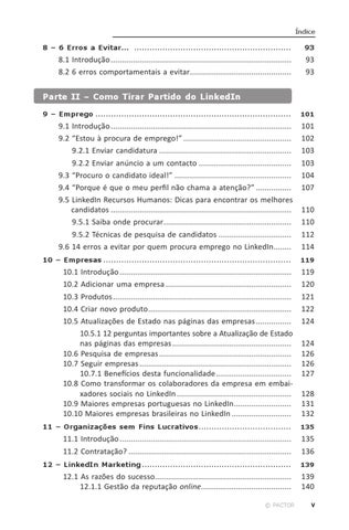 11.1 Introdução............................................................................... 135 11.2 Contratação?........................................................................... 136 12 – LinkedIn Marketing........................................................... 139
