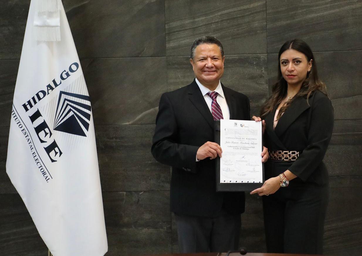 Ya hay gobernador electo, es Julio Menchaca, al haber obtenido una votación de 658 mil 562 votos, contra 335 mil 531 de Carolina Viggiano, candidata de Va por Hidalgo, lo que arroja una diferencia de 323 mil 31 sufragios a su favor, Julio Menchaca recibió la constancia de mayoría que lo acredita como gobernador electo de Hidalgo.