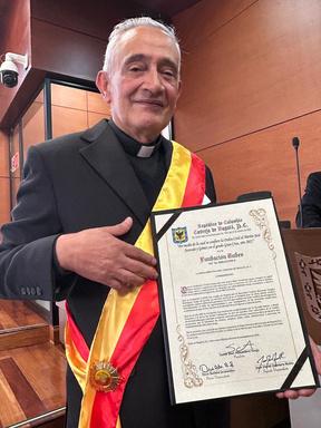 Elpasado4denoviembreenlaciudaddeBogotá,elDirector yFundador,padreBernardoVergaraRodríguez,c.j.m.,recibió ennombredeFundaciónEudesColombiaelreconocimiento a casi cuatro décadas de trabajo incansable por la dignidad, la salud y la inclusión de personas que viven con VIH/SIDA con la Orden Civil al Mérito José Acevedo y Gómez enelgradoGranCruz.