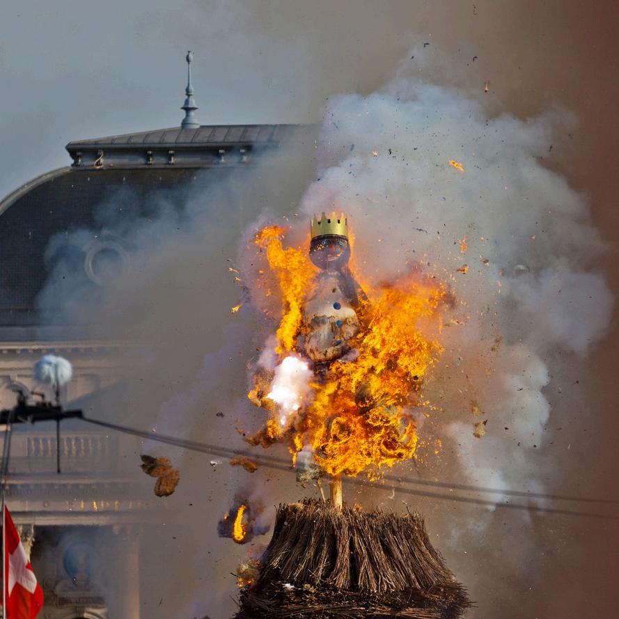 Suizaesunpaísllenodecostumbresqueamenudo implican desterrar el invierno En Zúrich, también se quema el invierno en forma de muñeco de nieve artificial que se llama Böögg Tradicionalmente, la figura, cuya cabeza está llena de dinamita, se colocaenunapiraunlunesdeabrilyseenciendea las 18:00 en punto. Por eso, la fiesta también se llama “Sechseläuten”. La gente cree que el verano será caluroso si la explosión de la cabeza se hace rápidamente, o viceversa. Desafortunadamente, la creencia popular no siempre corresponde con la realidadmeteorológica.