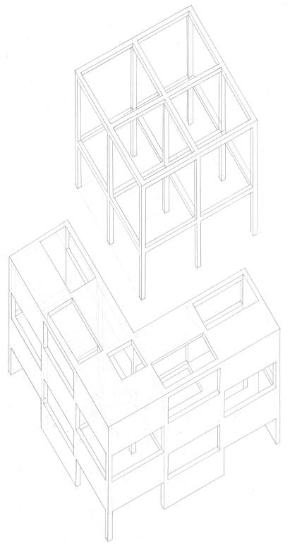 Tot i la presència de murs fixes, la distribució interior no es veu condicionada, ja que es poden deixar buits per generar patis, exposant així l’esquelet de l’habitatge.