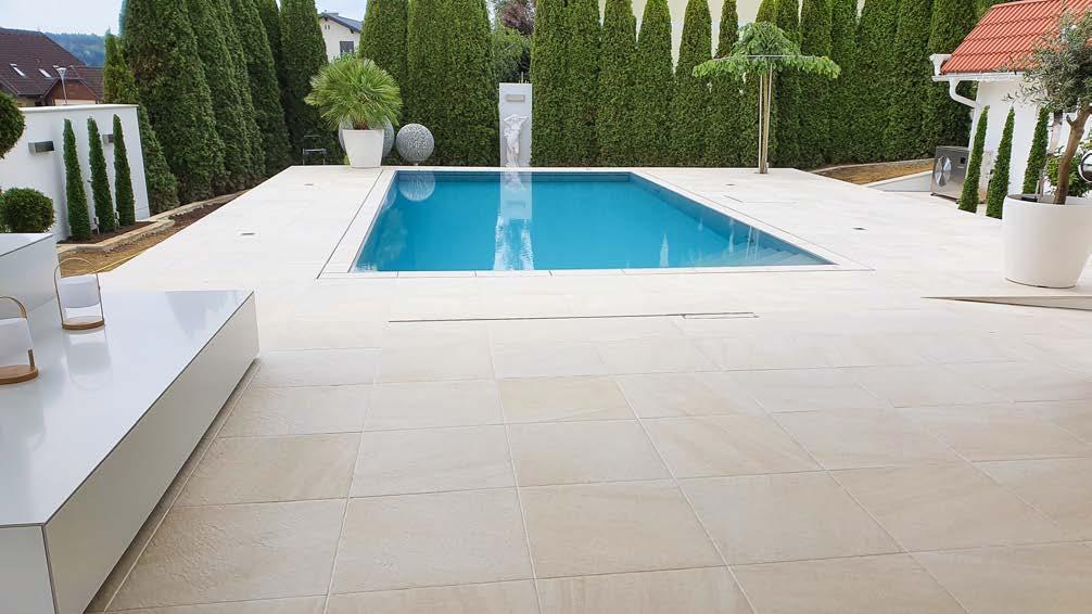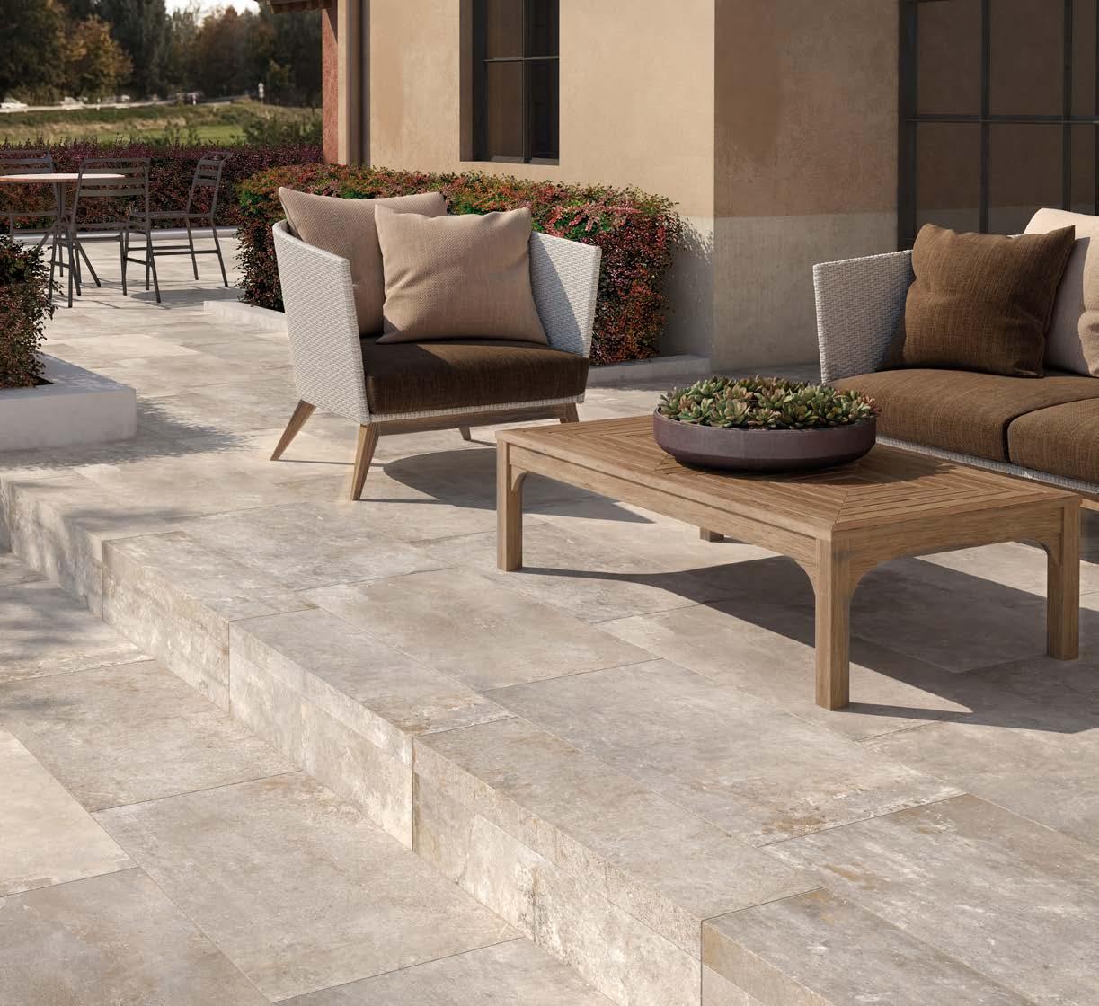 Aufgrund seines hellen, neutralen Charakters reflektiert Travertin Vanillia das Licht gut und kann sowohl den Innen- als auch den Außenbereich optisch vergrößern und aufhellen.