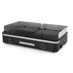 2.400 W, schwarz, 2 getrennt regulierbare Grill flächen, einfache Bedienung, Temperatur per LED-Drehregler einstellen, 5 Temperaturstufen, herausnehmbare Fettauffangschale, entnehmbare Grillplatten.