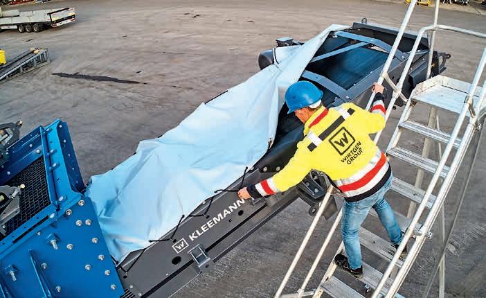 žmonės, bet ir užtikrinamas mažesnis statybų aikštelių miestuose poveikis aplinkai. Kleemann sukūrė dvi priemones, kurios prisideda prie dulkių mažinimo. Tai specialus konvejerio dangtis ir nauja vandens purškimo koncepcija – vandens siurbliai prijungti prie išmaniai išdėstytos vandens purškimo sistemos. Galima naudoti vandenį ir iš vandens telkinių ar rezervuarų. Konvejerio dangtis saugo, kad smulkios dulkių dalelės nebūtų nupūstos ir liktų ant konvejerio. Rezultatas – daug mažiau dulkių išmetama į aplinką.