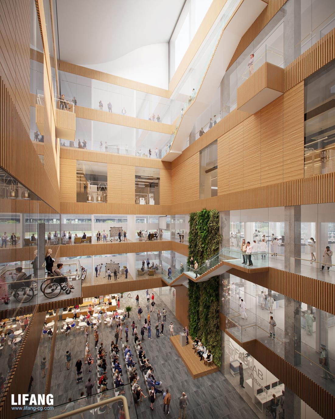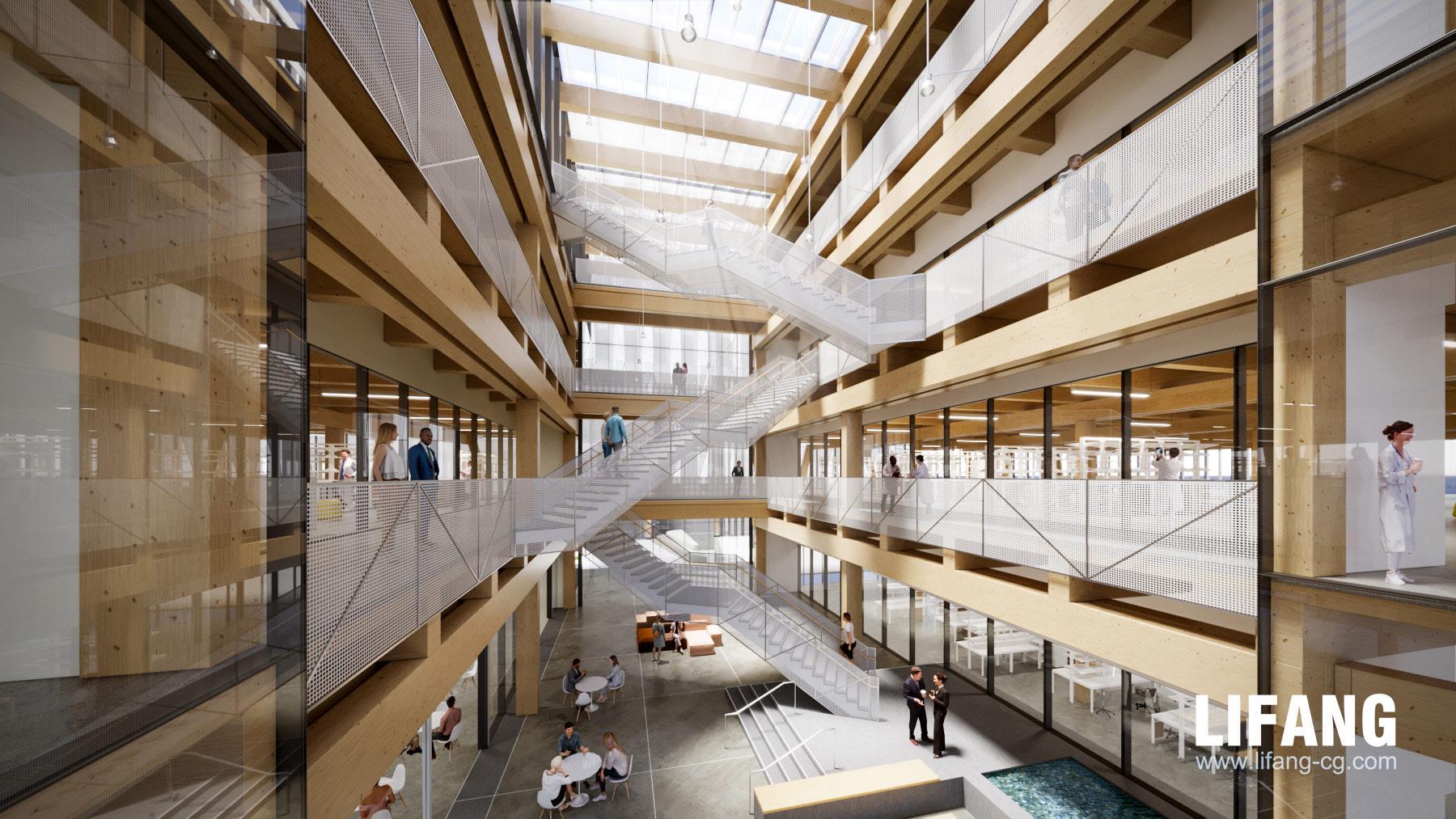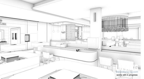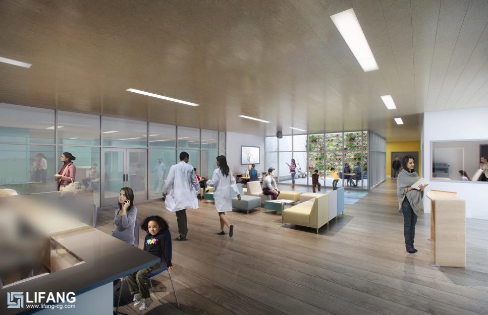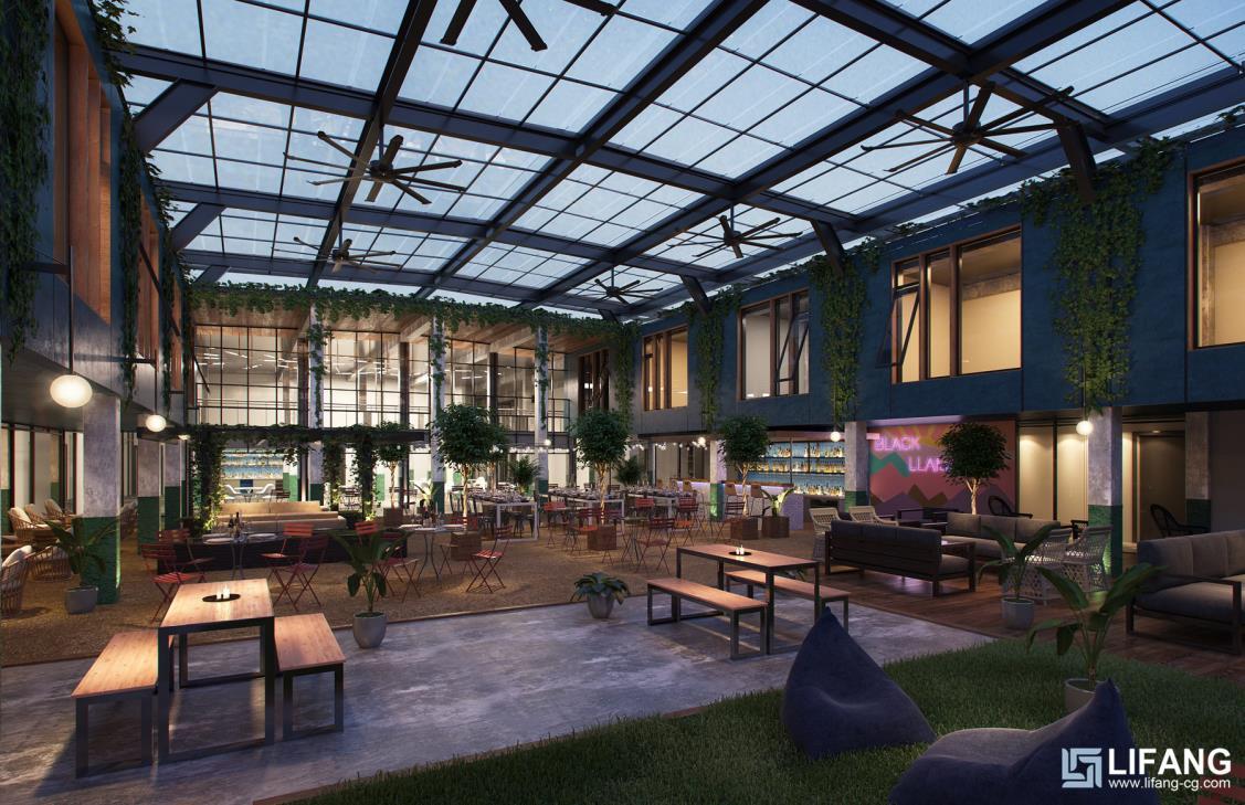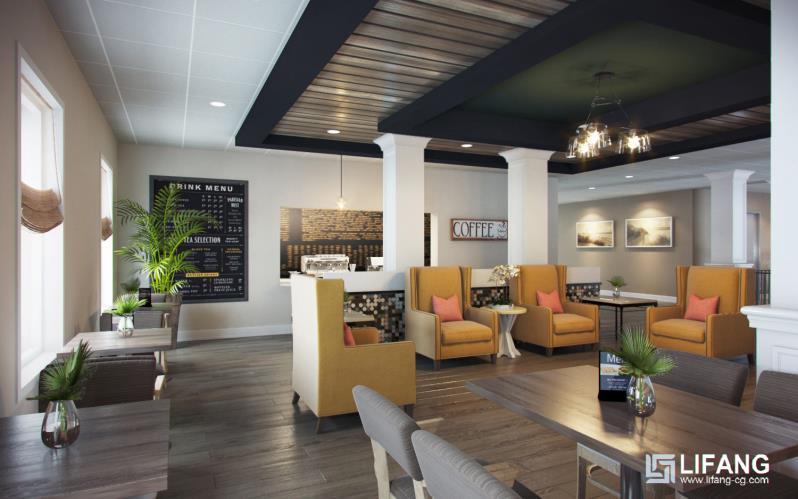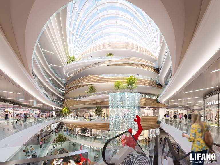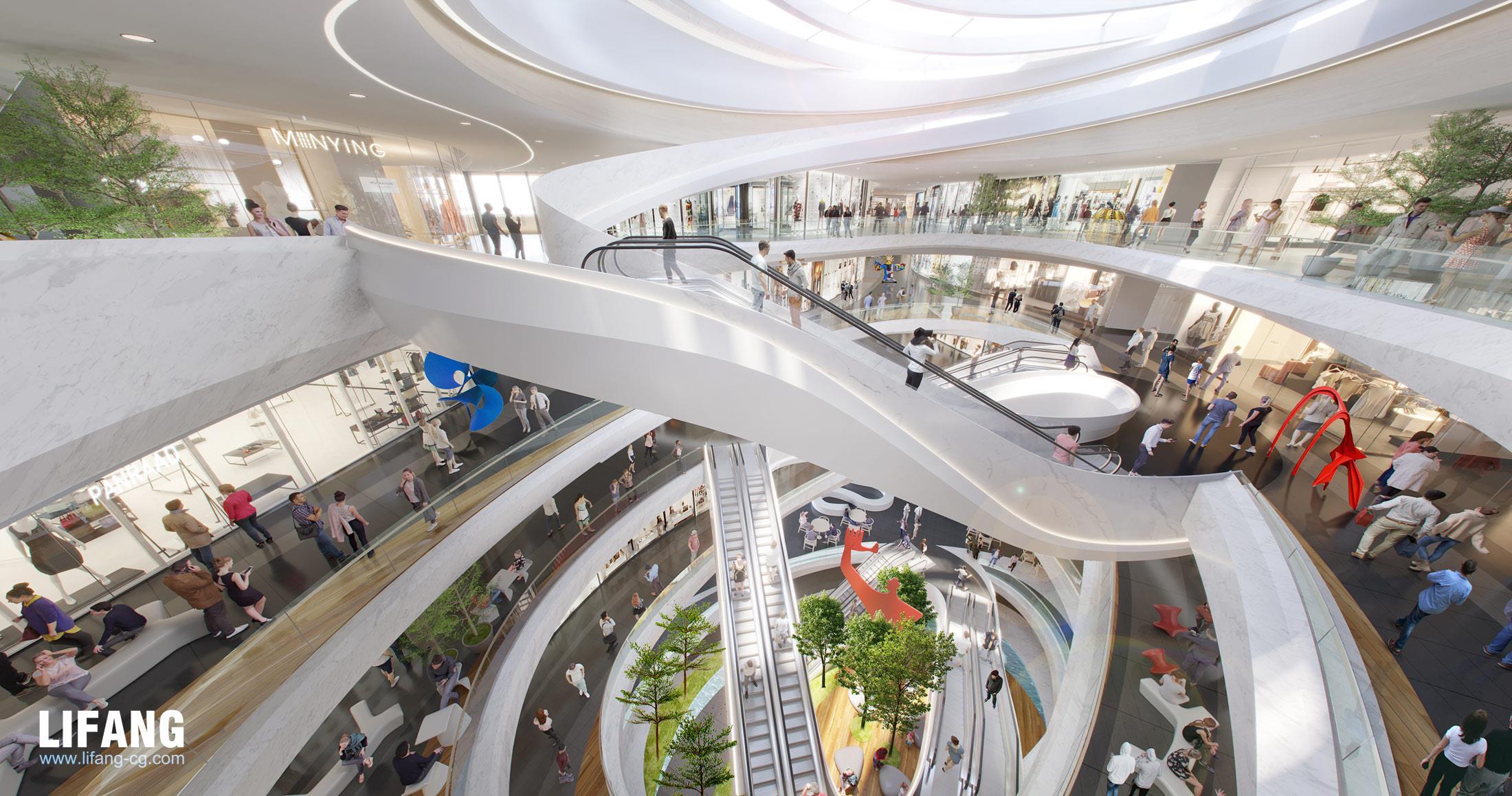 Rendering drafts are sent to confirm the lighting, texture, colors, shadow, people, green plants etc.
