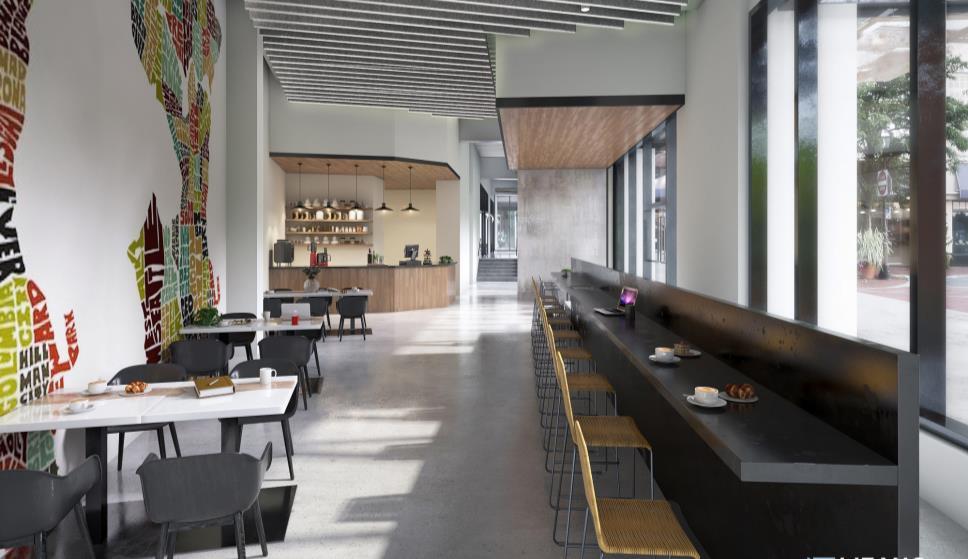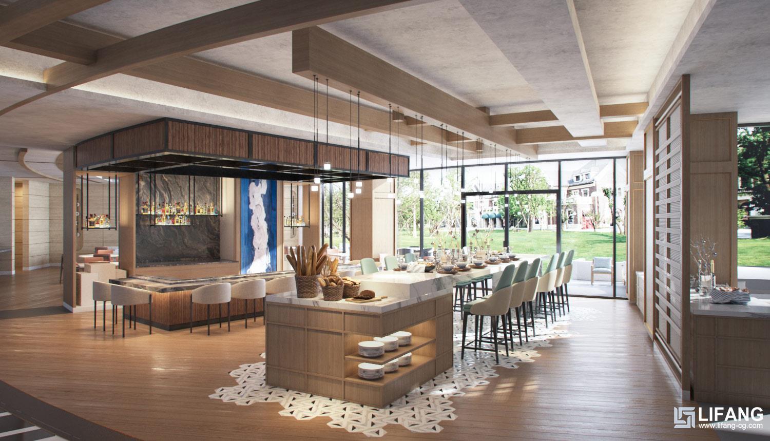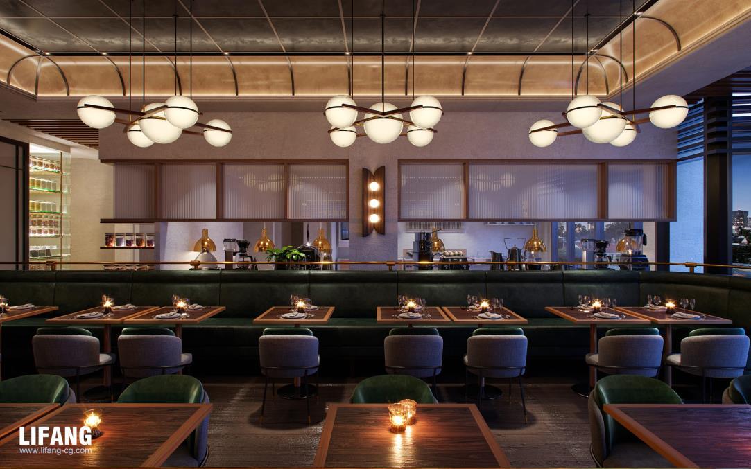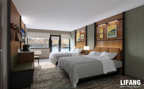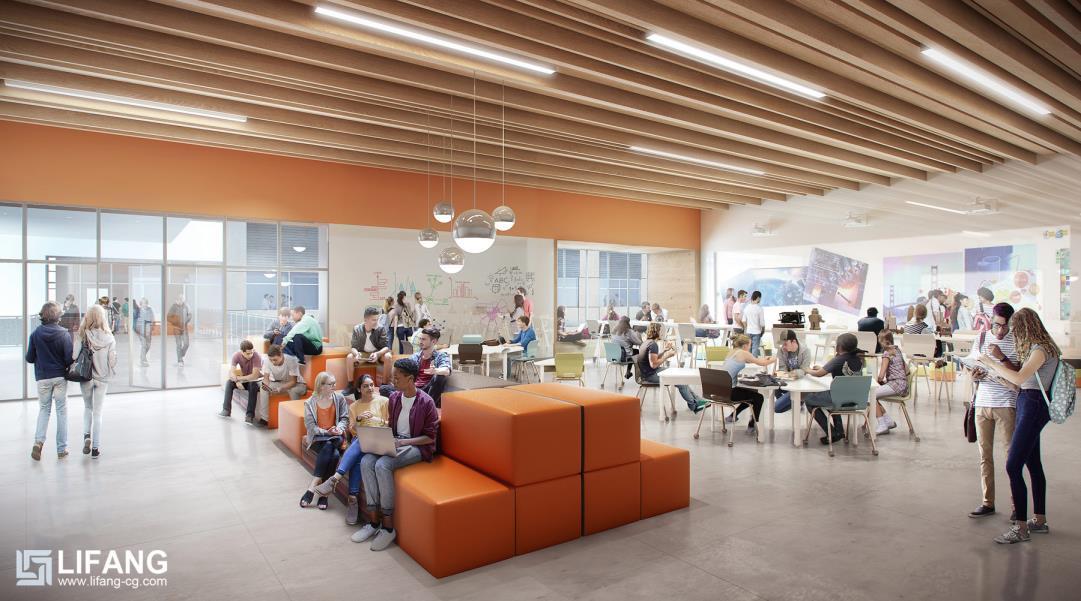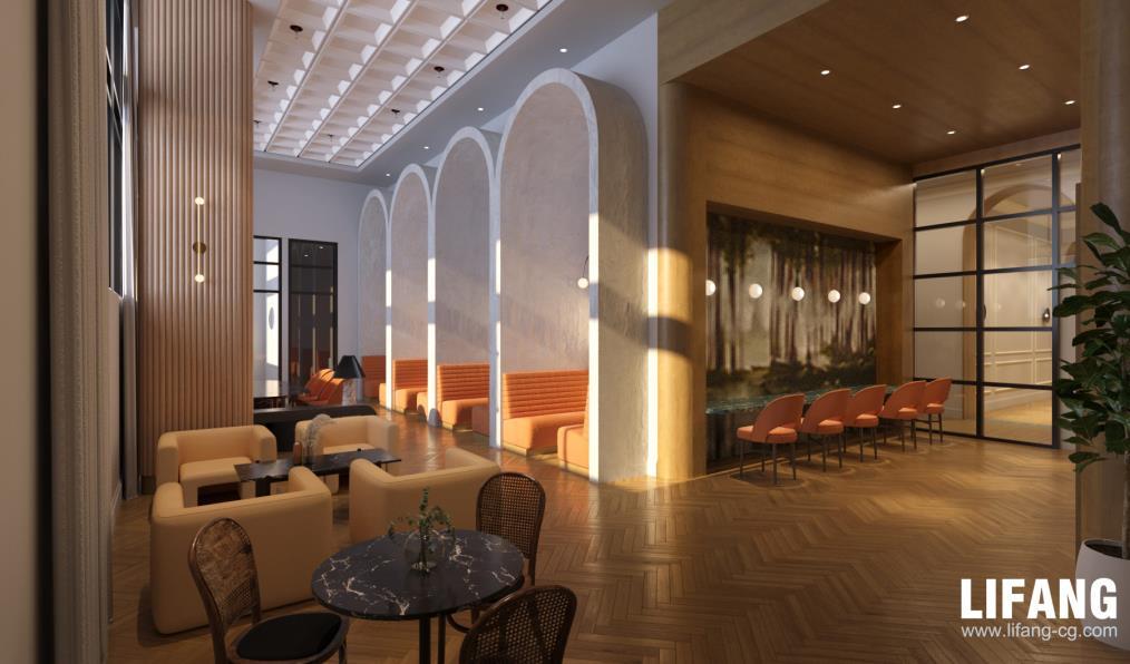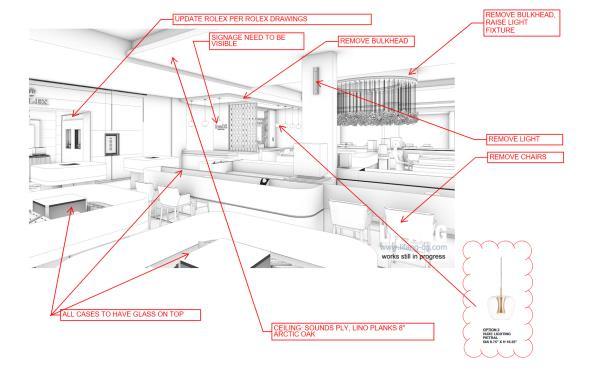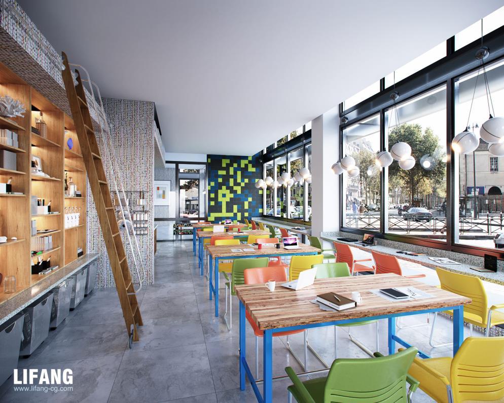 Rendering drafts are sent to confirm the lighting, texture, colors, shadow, people, green plants etc.