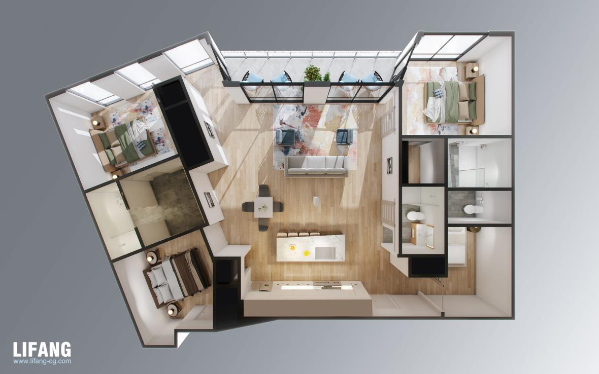 Furniture Model Database Webiste: https://sc.lifang-cg.com/ Different ways to deal with the surrounding buildings.