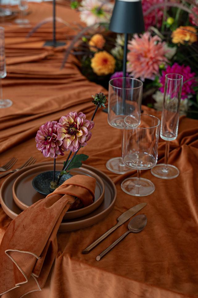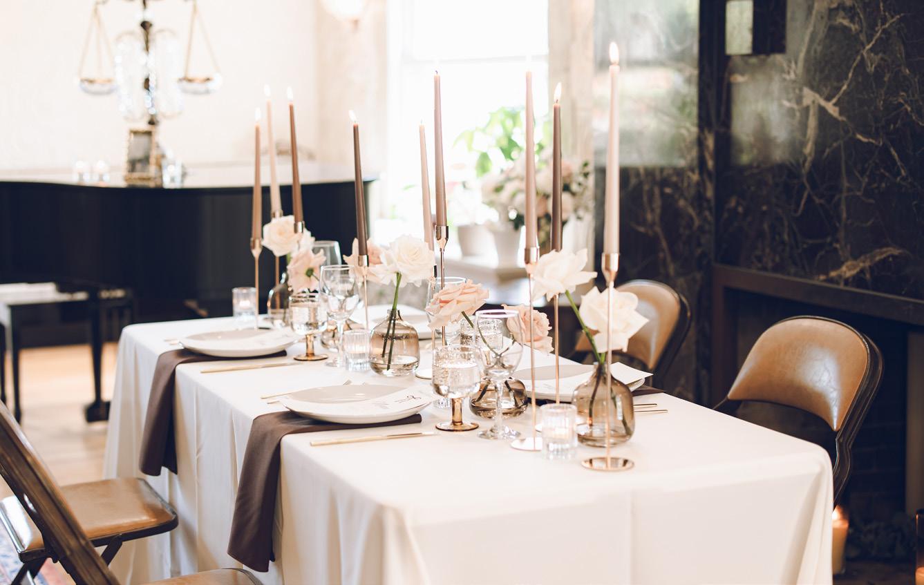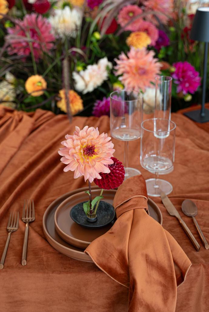 The 2025 Pantone Color of the Year, Mocha Mousse, ties it all together, appearing in dinnerware, décor, florals and desserts for a cohesive, sophisticated palette!