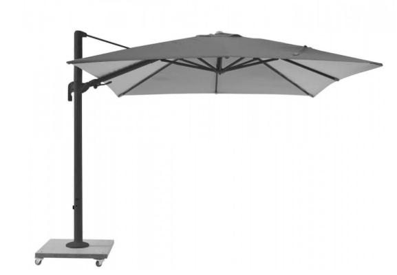 Seating Group: BELGA Lava Gray recliner armchairs, ottoman and (left-right) reclining loveseat - Height Adjustable Coffee Table: BERGAMO 55”x30” with Ceramic Black Marble table top - Upholstery: Sunbrella Dark Gray Sooty comfort cushions with drainage and zipper.