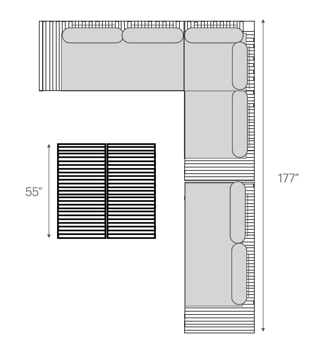 59”H x 126”L x 47”W