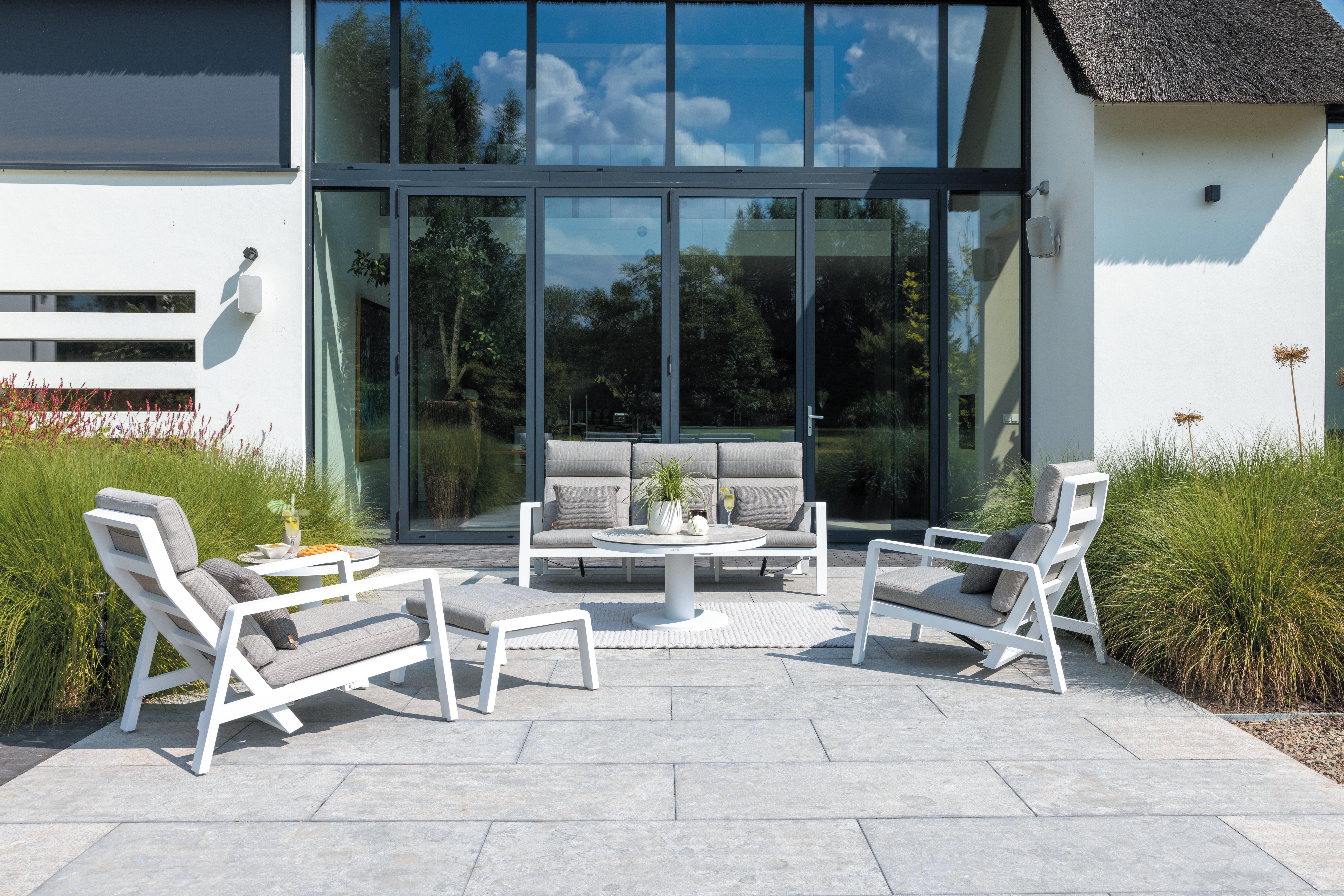 Powder-coated aluminum is the ideal material for high-end outdoor furniture, offering the perfect balance of durability, lightness, and refined style. It resists rust, corrosion - even in harsh weather - while the powder coating adds a sleek, uniform finish that’s both low-maintenance and long-lasting. Our collection features two timeless base finishes — Bright White and Lava Gray — for a clean, modern look, along with one exclusive finish, Sand Beige (only available on the Belamo exclusive collection 2026), for a warm, sophisticated touch that sets your space apart even more.