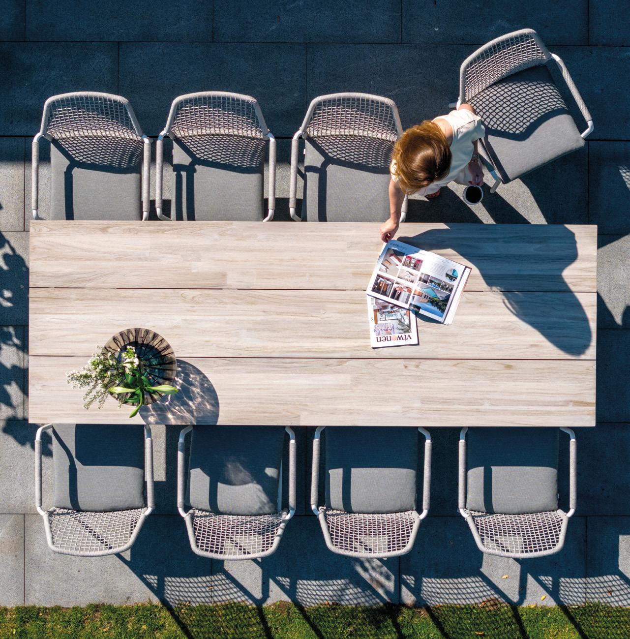 Bijna alles wat je in dit magazine zult tegenkomen is naar jouw smaak aan te passen. Mix en match frames, kussens en tafelbladen om jouw persoonlijke touch te geven. Of je nu kiest voor het warme karakter van teakhout of het moderne design van aluminium, onze hoogwaardige materialen bieden de perfecte basis.