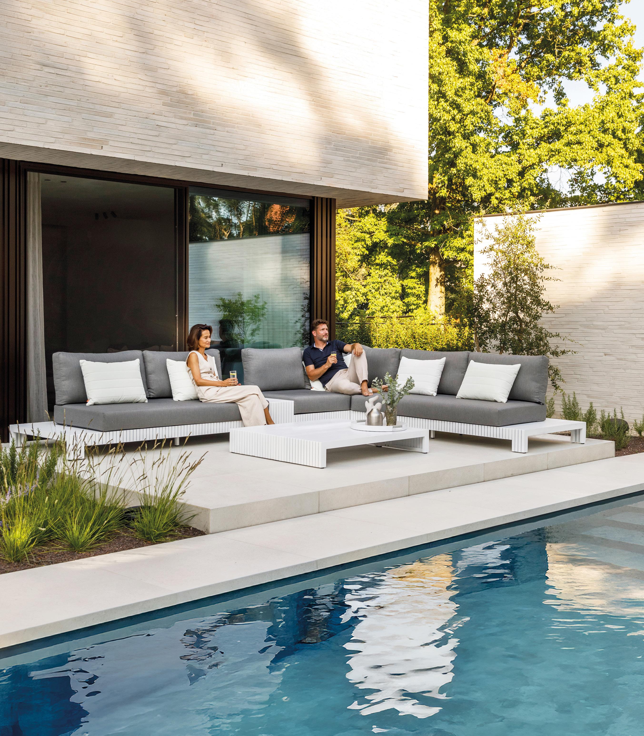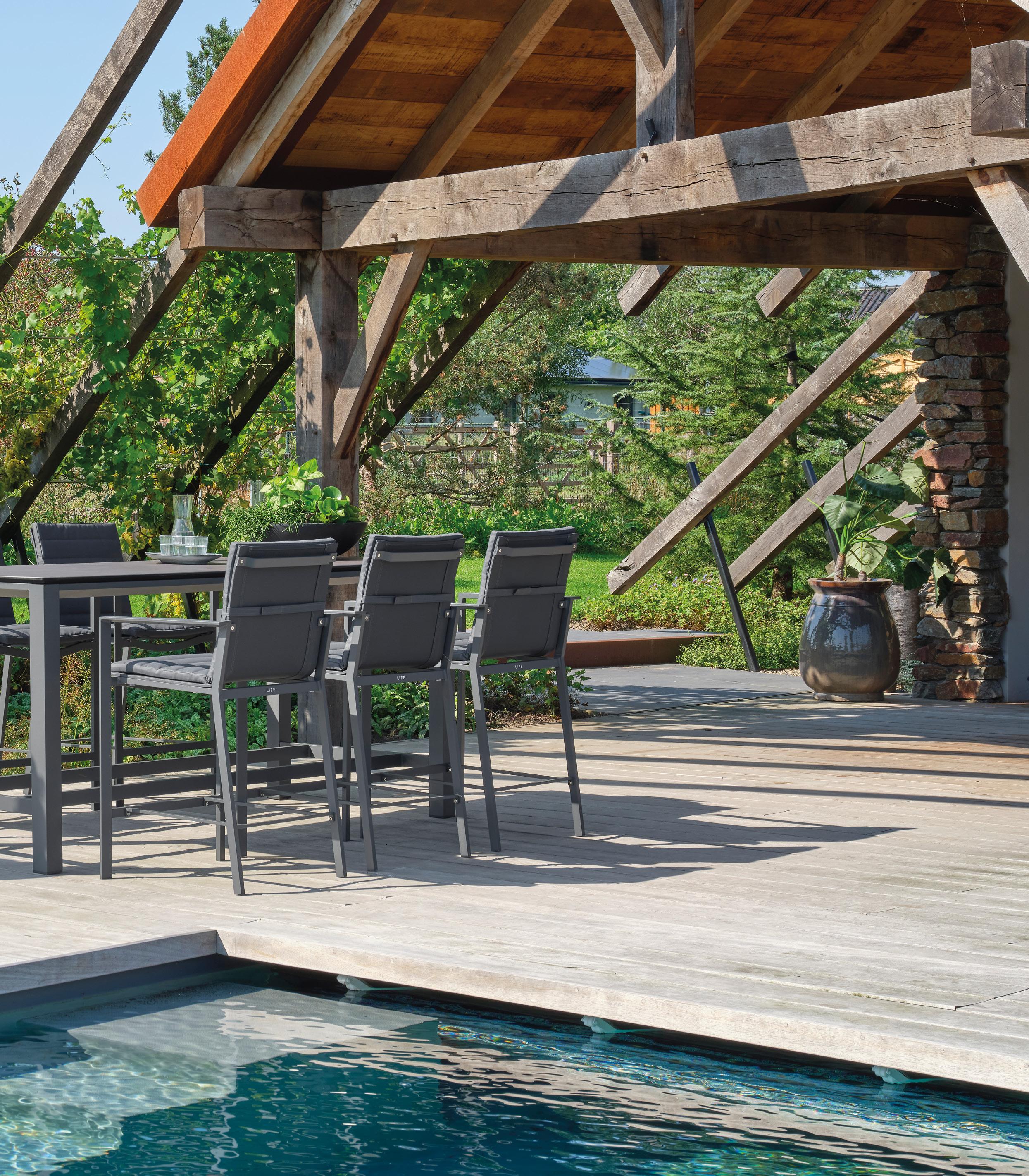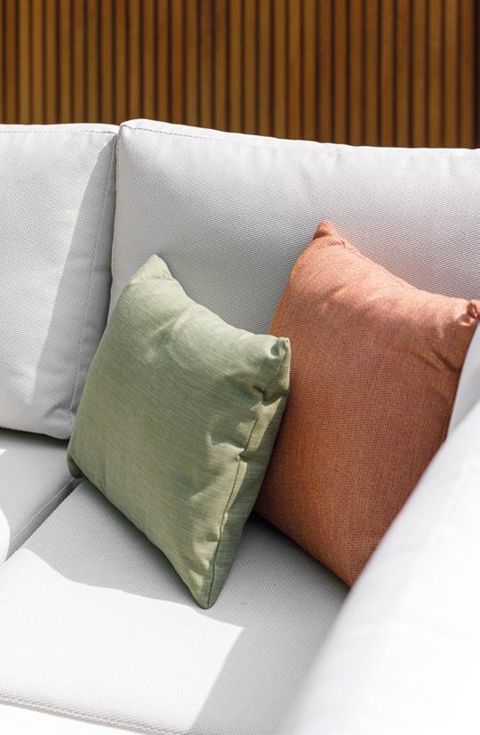 Almost everything in this magazine can be customised to your taste. Mix and match frames, cushions, and tabletops to create a look that reflects your personality. Whether you love the natural warmth of teak or the sleek sophistication of aluminium, our premium materials provide the perfect foundation.