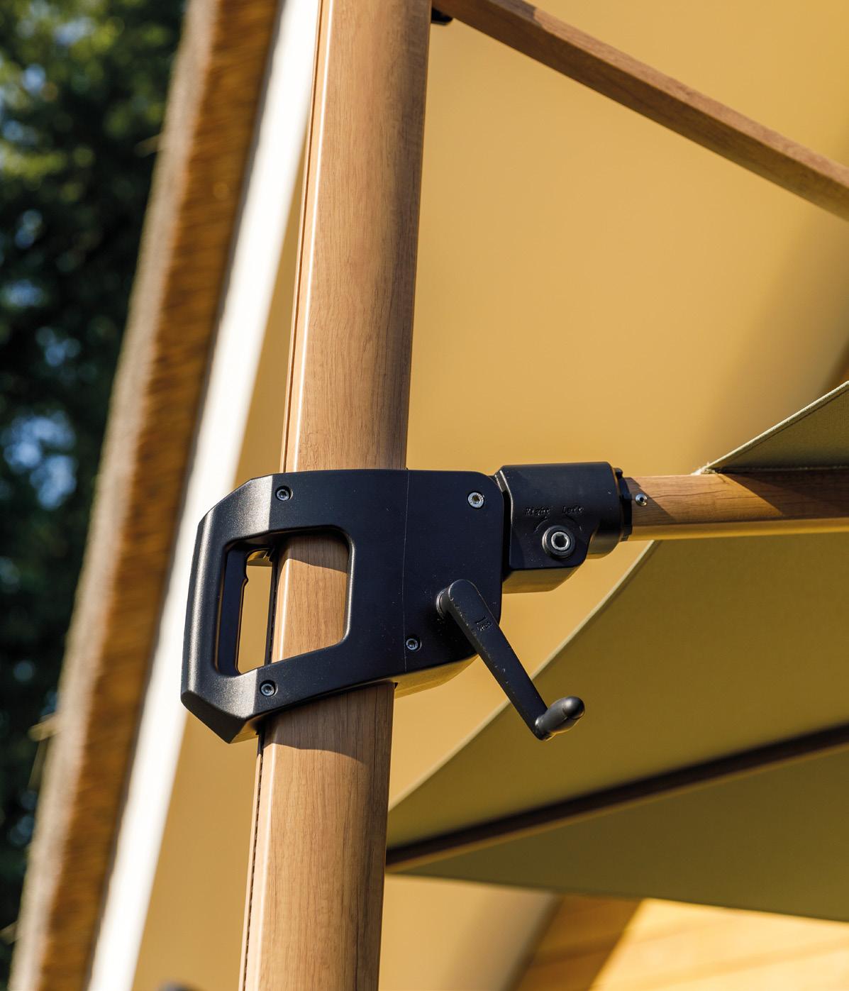 The Jasmijn offers optimal flexibility with its easy tilt function (backward and sideways) and 360° rotation. A practical solution for shade and comfort, it is an essential addition to a stylish and functional terrace.