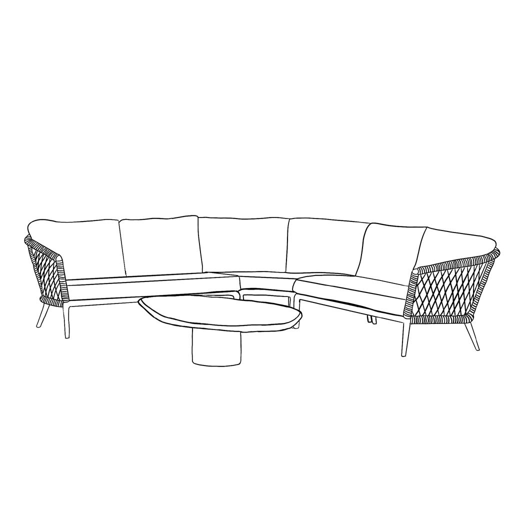 The Lima lounge is a luxurious, organically shaped lounge set made from aluminium and the innovative RuCore+. This thick rope is designed with a rubber foam core, a protective synthetic sock, and intricate weaving. The foam ensures comfort, while the water-repellent rubber provides protection. The synthetic sock prevents moisture build-up, allowing the woven structure to dry quickly and making it easy to clean and maintain. With a lightly reclined seat, the Lima lounge offers exceptional comfort—whether you’re relaxing with a good book or entertaining friends.