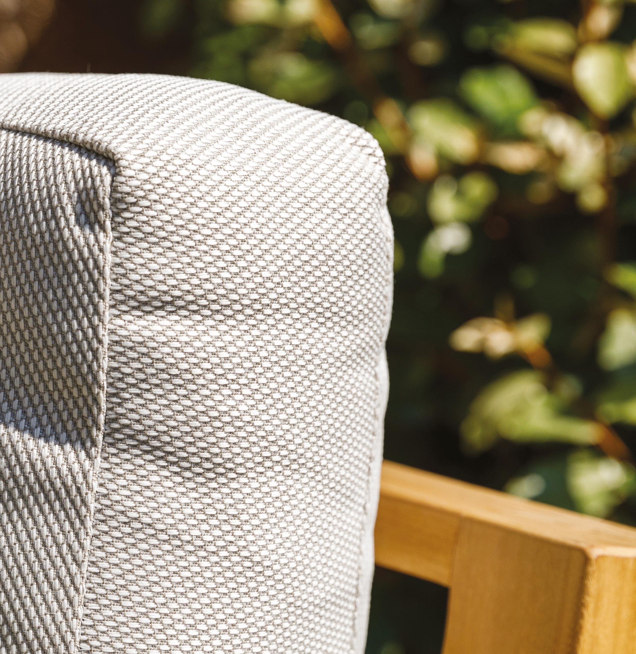 To extend the lifespan of the cushions, it’s recommended to treat them twice a year. This keeps the cushions dirt and water repellent. Clean the cushions by removing loose dirt, such as mud and green algae, with a soft cloth. Dab any liquid stains as much as possible with a dry, clean cloth.