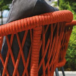 In our collection, you’ll find the latest, innovative form of weaving: RuCore. RuCore is made of rope with a rubber core. Around it, there is a layer of polyester fibers or synthetic fibers, which gives it strength. The advantage of the rubber core is that it stays dry, so the material dries very quickly. The core is waterproof but very flexible. It is also UV-resistant and has a soft texture for extra comfort.