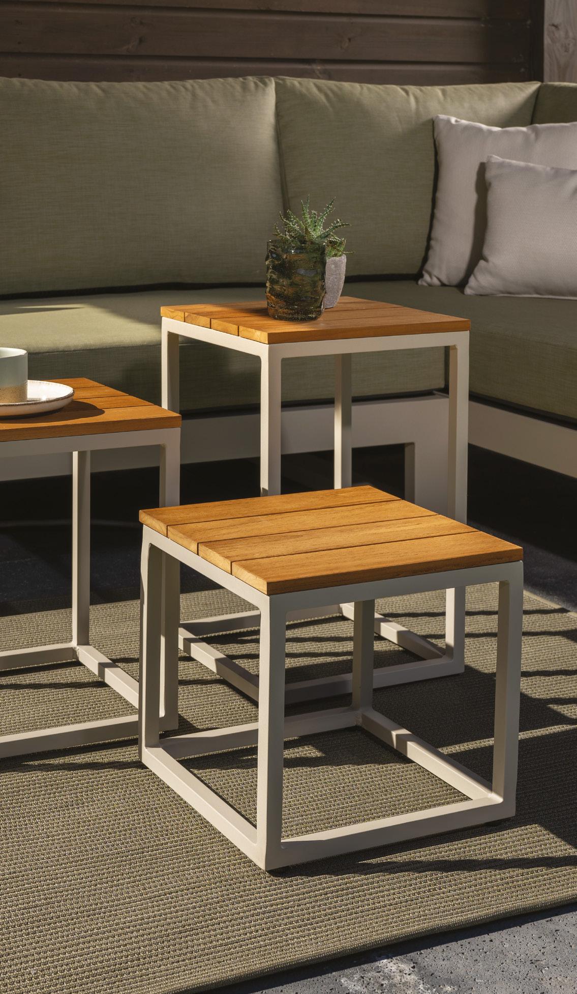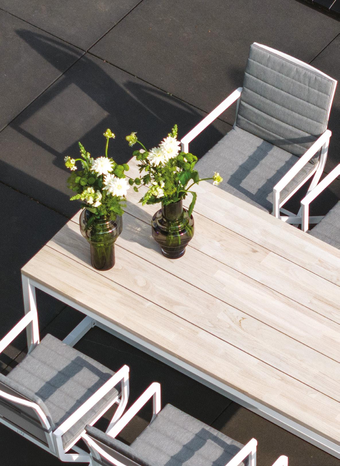 Leicht, pflegeleicht und rostfrei: Das sind die bekannten Eigenschaften von Aluminium. Nicht ohne Grund wird dieses Material oft für Gartenmöbel verwendet. Neben praktischen Eigenschaften bietet Aluminium auch eine moderne Optik. Das Material lässt sich gut mit anderen Materialien wie Bambus, Teakholz und Textilene kombinieren, wodurch Sie leicht Ihren eigenen Stil im Garten kreieren können.