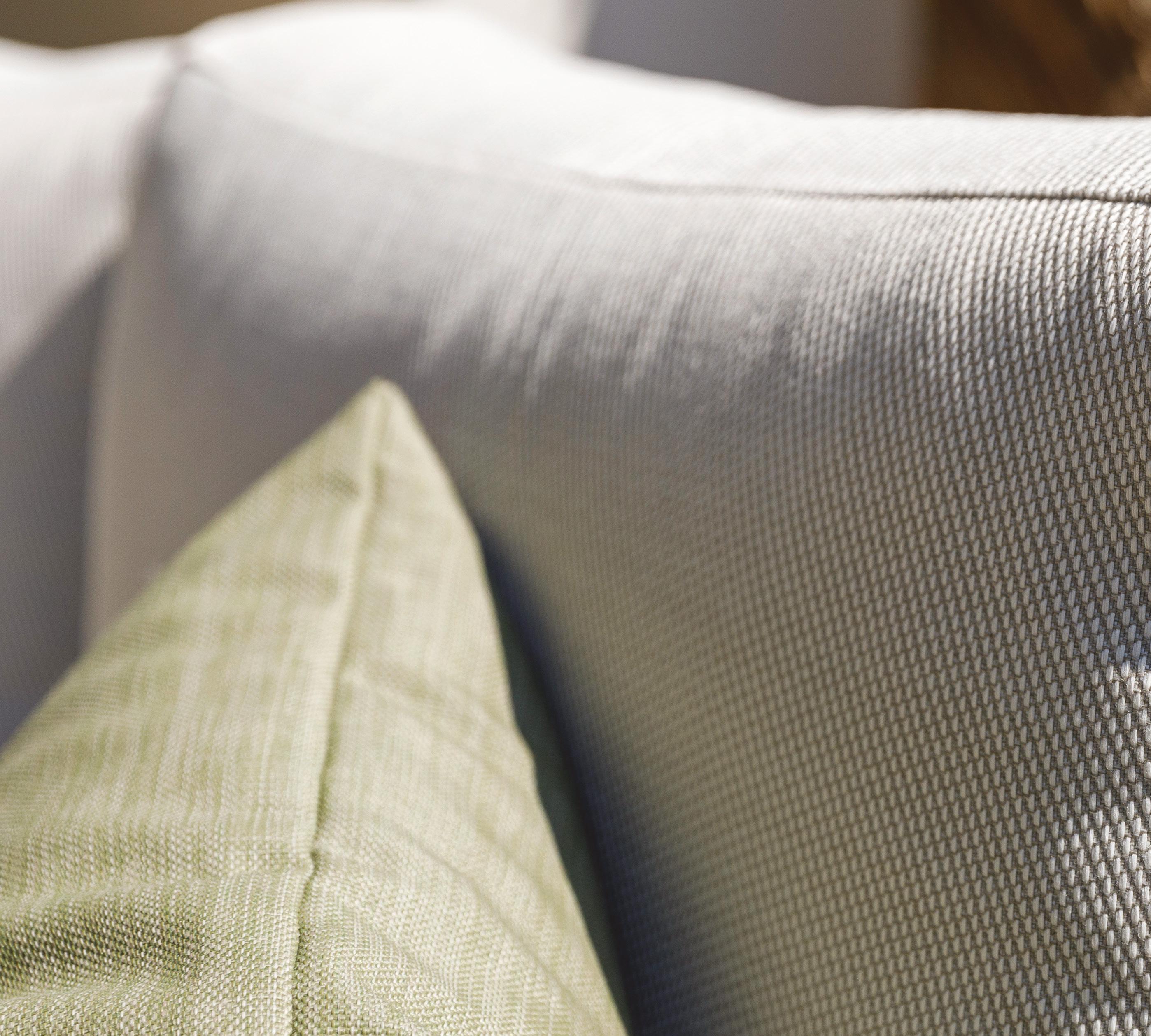 Das macht sie zu einer großartigen Wahl für jeden Außenbereich. Sie bestehen aus einer Art Kunststofffaden. Solid Loom hat ein Muster, das gewoben aussieht, und Twisted Loom erinnert an geflochtene Schilfrohre, was ihm ein natürliches Aussehen verleiht. Zudem ist Twisted Loom etwas dehnbar, was es noch bequemer zum Sitzen macht.
