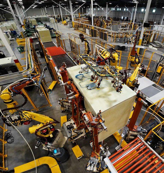 Image of a LifeArk floor coming out of the rotomolding machine in the LifeArk manufacturing factory in Madera, CA
