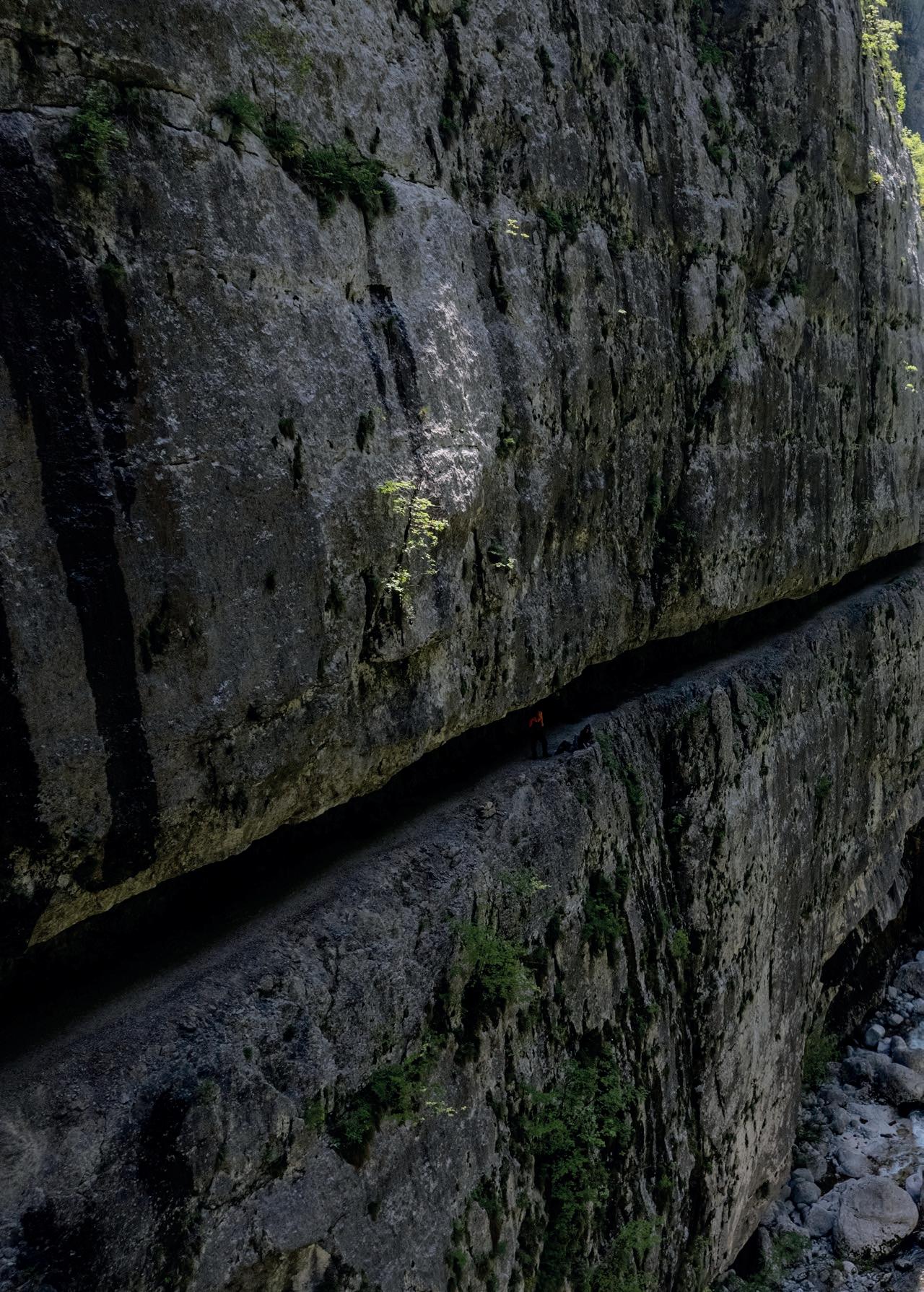 As we breathlessly pushed on through treacherous terrain, Janko began to recount the tale of Velja Lazba, a mysterious hidden settlement concealed within the Mrtvice canyon. The story tells of a local mountaineer who fled from his village after cutting off the head of a famous Turk and found salvation in a small patch of fertility hidden deep within the barren, oppressive rock. As generations passed it grew into a small, thriving community that defied all sense of logic - an island oasis, floating in an ocean of stone and providing life in spite of its inhospitable location.