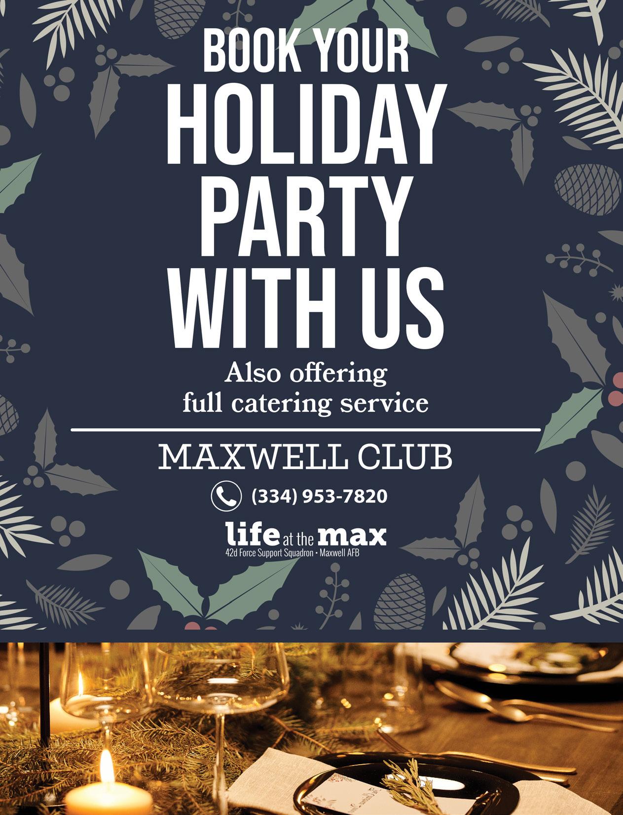 Save the date for the annual Family Fest on October 22 at the Maxwell Club where you can enjoy hayrides, the pumpkin patch, fall-themed photo stations, pumpkin painting, and the costume contest. After Family Fest, adults are invited to Maxwell Club for Fright Night. Join us for a spooky haunted house tour, music, dancing, and themed food and drinks. Christmas Holiday Fest and Tree Lighting will be on Friday, December 2 at 4 p.m. at Freedom Park. Kids can wear their pajamas and write letters to Santa, take pictures in the holiday photo booth and enjoy delicious Christmas cookies and punch. Mulled wine will also be available for the adults. Kids and adults can Bowl With The Grinch on December 3. The School Age Centers at Maxwell and Gunter are offering day camps dur ing Thanksgiving week and Christmas week. The deadline to register is October 31, and space is limited so sign up early at www.militarychildcare.com.