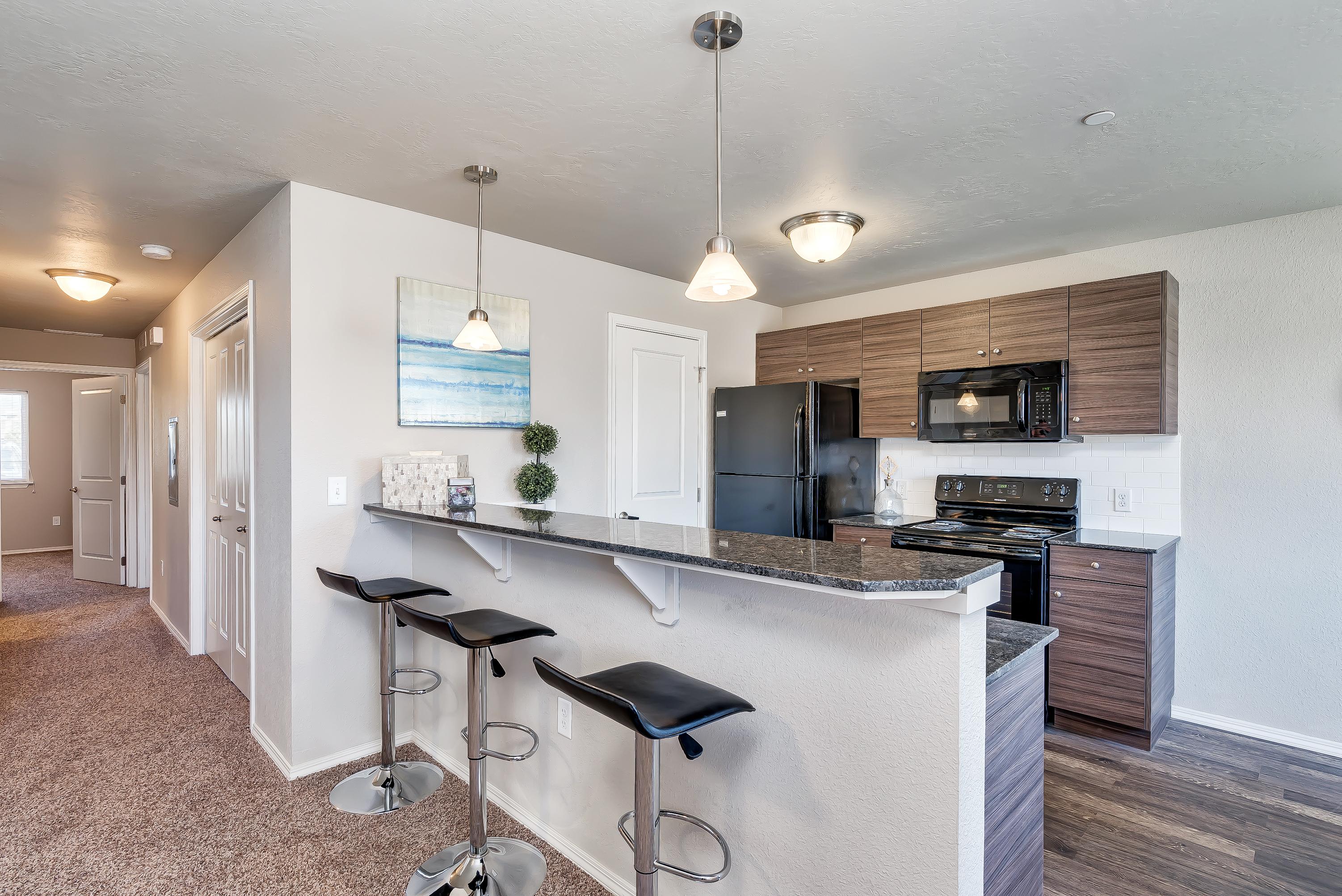 • 24-hour Fitness Center with Cardio, Resistance, and Free Weights • Low-Density Life Style • On-Site Clubhouse with Multimedia Center and Refreshment Bar • Leash-Free Dog Park • Easy Access to I84 • Expansive Playground • Covered Parking for Every Unit • Online Rent Payments and Maintenance Requests Amenities & Features • All units are 100% Energy Start Certified • All units include a full electric appliance package • Full-size washer and dryer • Balconies • Open Layout • Granite Countertops • Fitness Center with 24 Hour Access • Clubhouse • Picnic Area • Playground • Wheelchair Accessible • Walk-In Closets • Hardwood Floors • Boise Airport 18.2 miles away