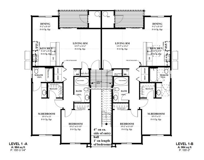 Each unit only shares one common wall that is double framed for extra dampening and the interior is designed to naturally project sound back into the unit. Additionally, both the shared wall and ceiling of the first floor units contain sound channeling and insulation for further privacy.