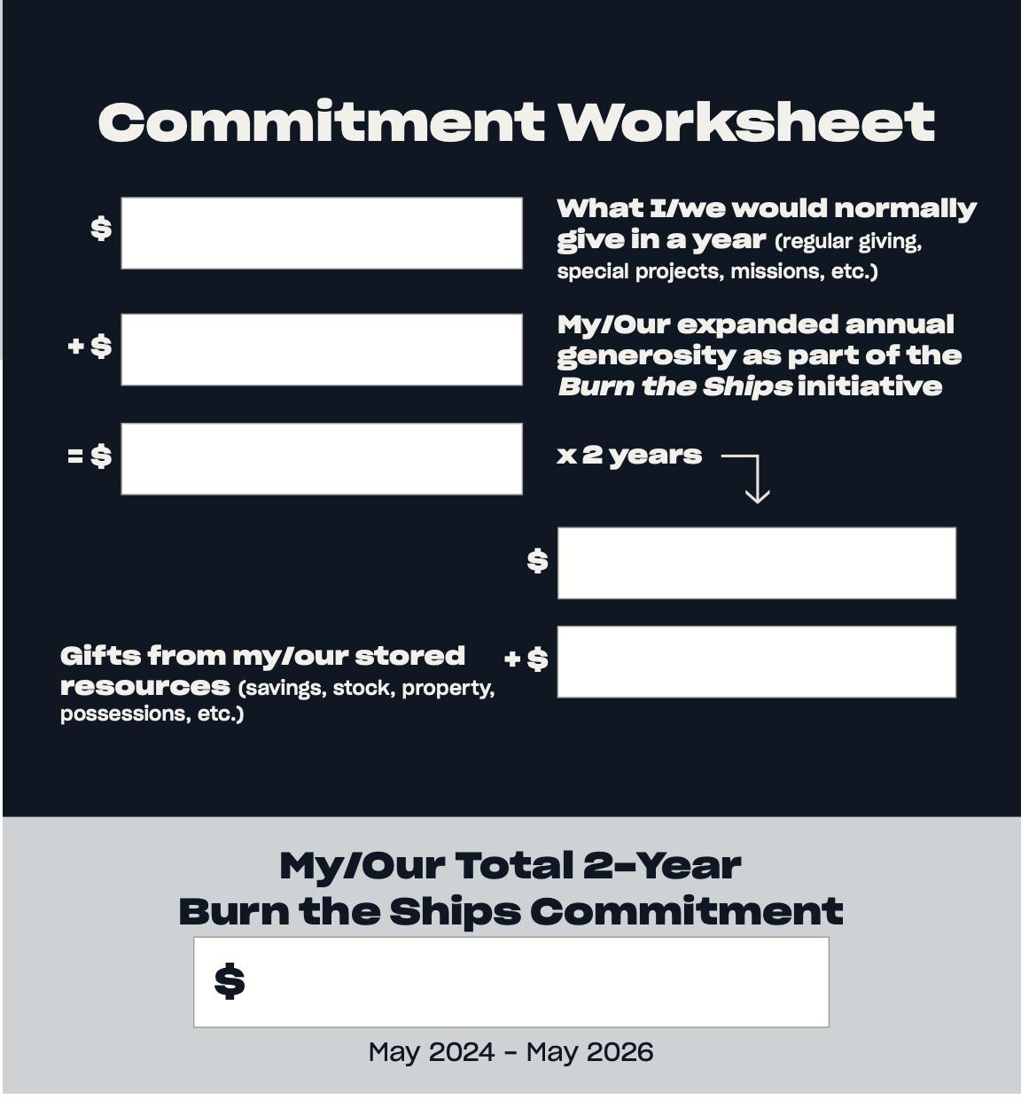 As you pray and discern how God would ask you to give during this time, use this gift chart as a discipleship tool. Let it be something that inspires and challenges you towards greater generosity as we seek to burn the ships for God and win NOCO for Christ.