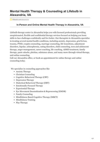 Get convenient, affordable, and flexible therapy and counseling from the comfort of your home or in person at one of our local offices. Overcome your unique challenges with Lifebulb’s industry-leading therapists providing mental healthcare plans and treatment personalized for you.