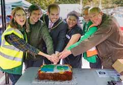 Pictured cutting the cake, from the left, are: Pherenice WorseyBuck co-founder FSHWKG; Cllr Will Rowlands; Jonathan Andrews, Deputy Mayor of Bromley; Cllr Gemma Turrell; Rachel Bailey, co-founder FSHWKG; and Patrick Phillips, Chair of FSHWKG.