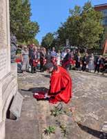 The President of the Royal British Legion, Kim Botting, took on some of the load at the event. Afterwards, flowers were laid at the remembrance area.