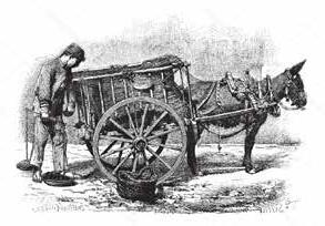 When the cart came to its destination the coal man would drag the sack to the edge of the cart. He would have on a leather cap with a leather flap down his back to protect his neck, back and shoulders as he drew the sack onto his shoulders and back. To protect his legs, he wore a narrow strap just below the knee. The most notable thing about him was his colour. The coal dust covered him so that his skin was black on face and hands, hair and clothes. The only part of his body not covered with coal dust, were his eyes, which were white as he kept rubbing them to remove the dust. He’d heave the sack onto his back to take it to the ‘coal hole’ which might be in the cupboard under the stairs or in the coal bunker outside. It was a physically demanding job. There was always a tip of 2 old pennies probably so that he would not make marks on the walls.