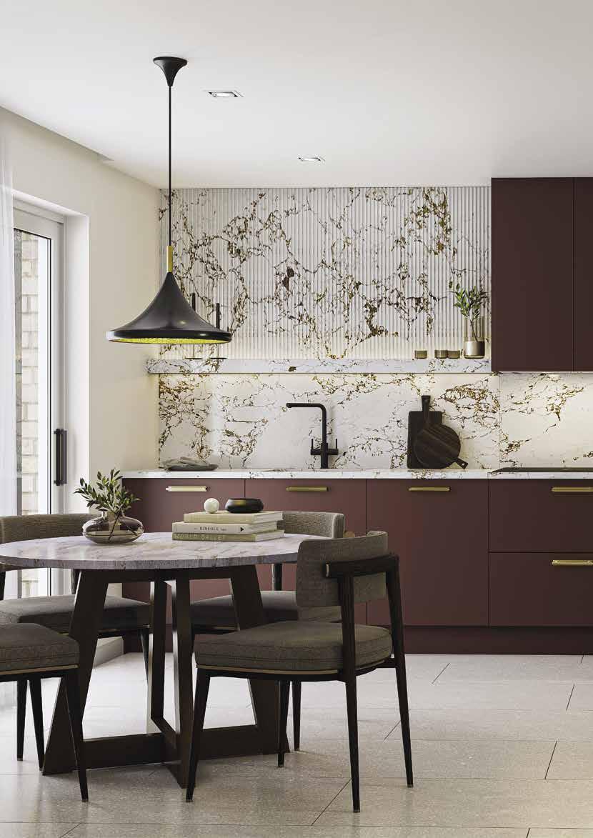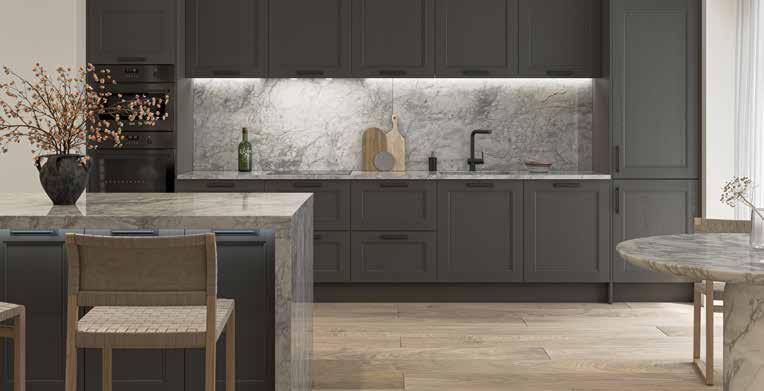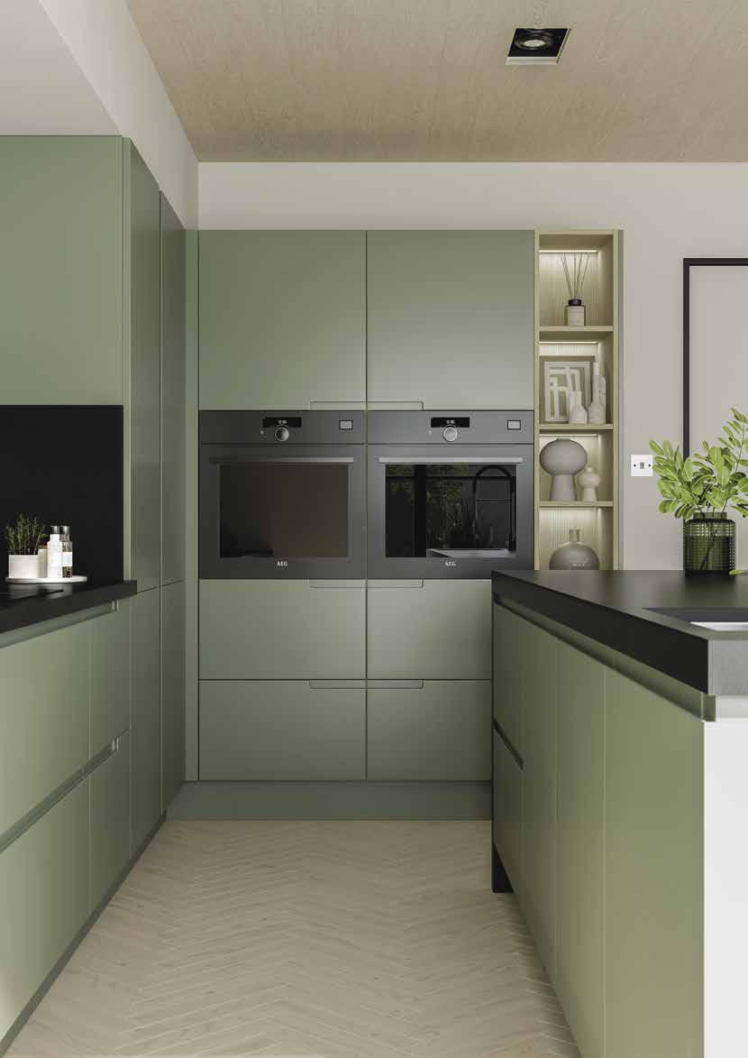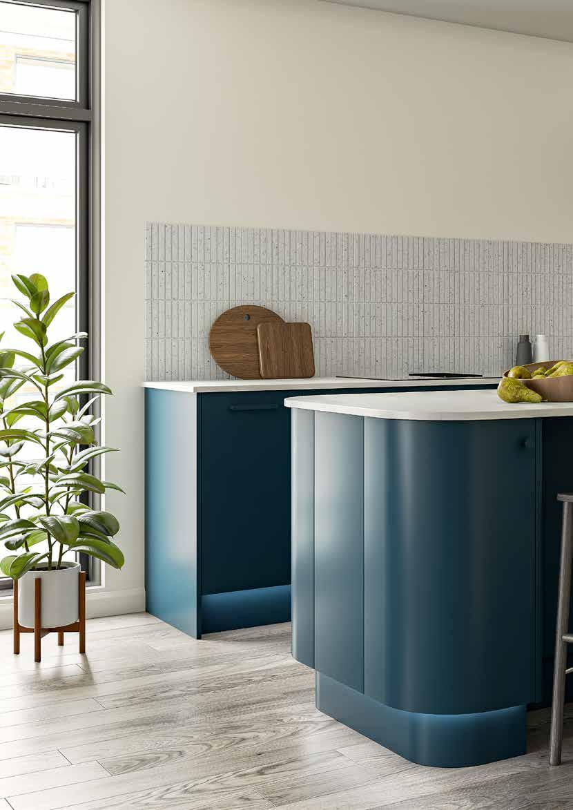 NOTE: Whilst every effort has been made to accurately represent painted colours, actual product colours may vary slightly from colours shown in this brochure. If opting for a dark kitchen, it is worth noting that darker shades can show up fingerprint marks more easily than lighter finishes, however these are easily removed with a soft microfibre anti-scratch cloth.