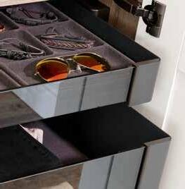 CONERO from Kesseböhmer now offers a range of fittings for bedrooms, with customisable functional elements to create a design-focussed ambience for your wardrobe. CONERO offers a comprehensive and modular program that caters to all your needs. Safely and stylishly store your shoes and accessories in these elegant glass drawers.