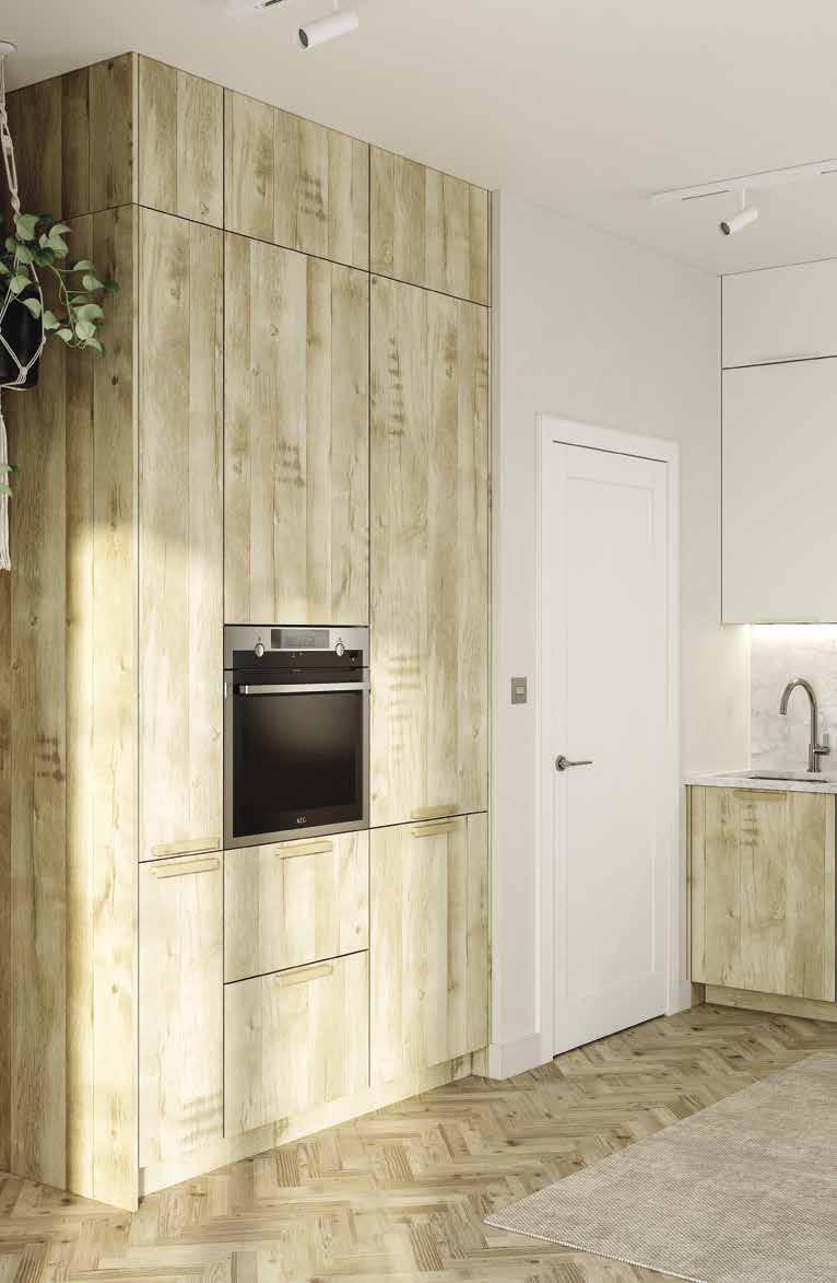 With an elegant narrow Shaker design and a distinctive ash-grain, Crathorne lends itself perfectly to both classic and contemporary kitchen looks. It can be paired with an eye catching rail detail for a sleek handleless look, or can be further customised with an Edge handle from our Outline integrated handle collection.