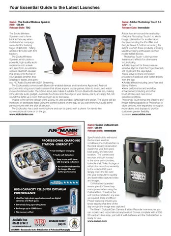Your Essential Guide to the Latest Launches Name: The Zooka Wireless Speaker RRP: £79.99 Release Date: TBC