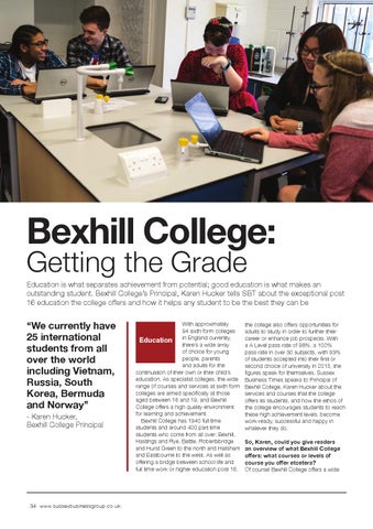 Education is what separates achievement from potential; good education is what makes an outstanding student. Bexhill College’s Principal, Karen Hucker tells SBT about the exceptional post 16 education the college offers and how it helps any student to be the best they can be