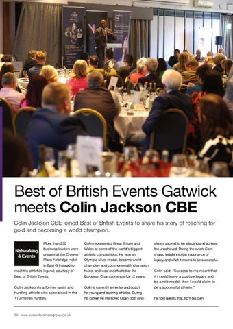 Best of British Events Gatwick meets Colin Jackson CBE Colin Jackson CBE joined Best of British Events to share his story of reaching for gold and becoming a world champion. More than 230