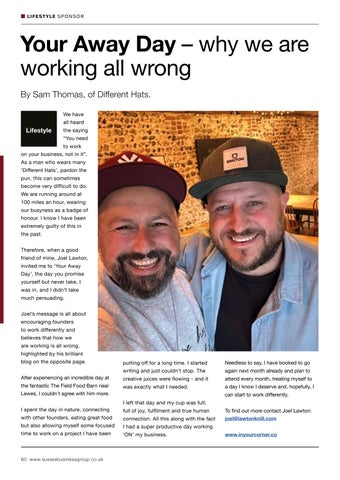 Therefore, when a good friend of mine, Joel Lawton, invited me to ‘Your Away Day’, the day you promise yourself but never take, I was in, and I didn’t take much persuading.