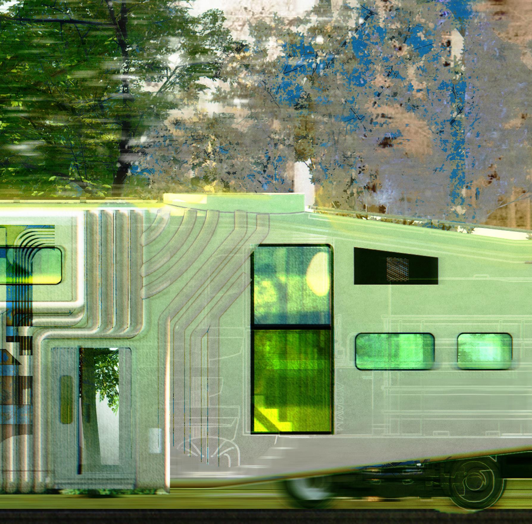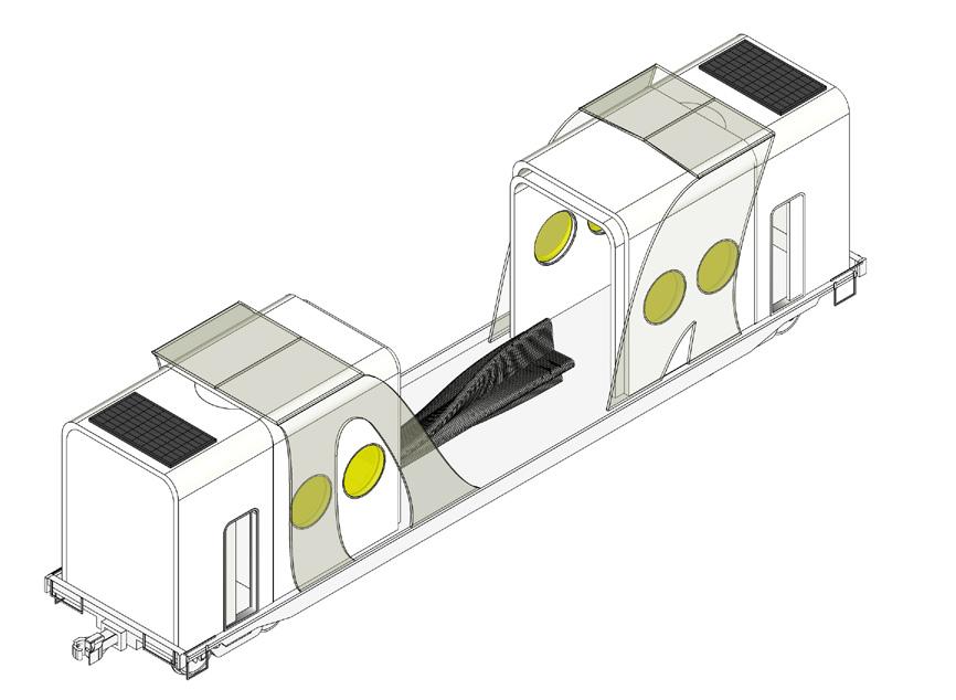 This project base on Canadian context, build on the Bombardier Bi-Level Cab Car which is used in Toronto as GO Train, and transformed into a mobile living space. It utilizes data from Alberta province to calculate energy demand and production.