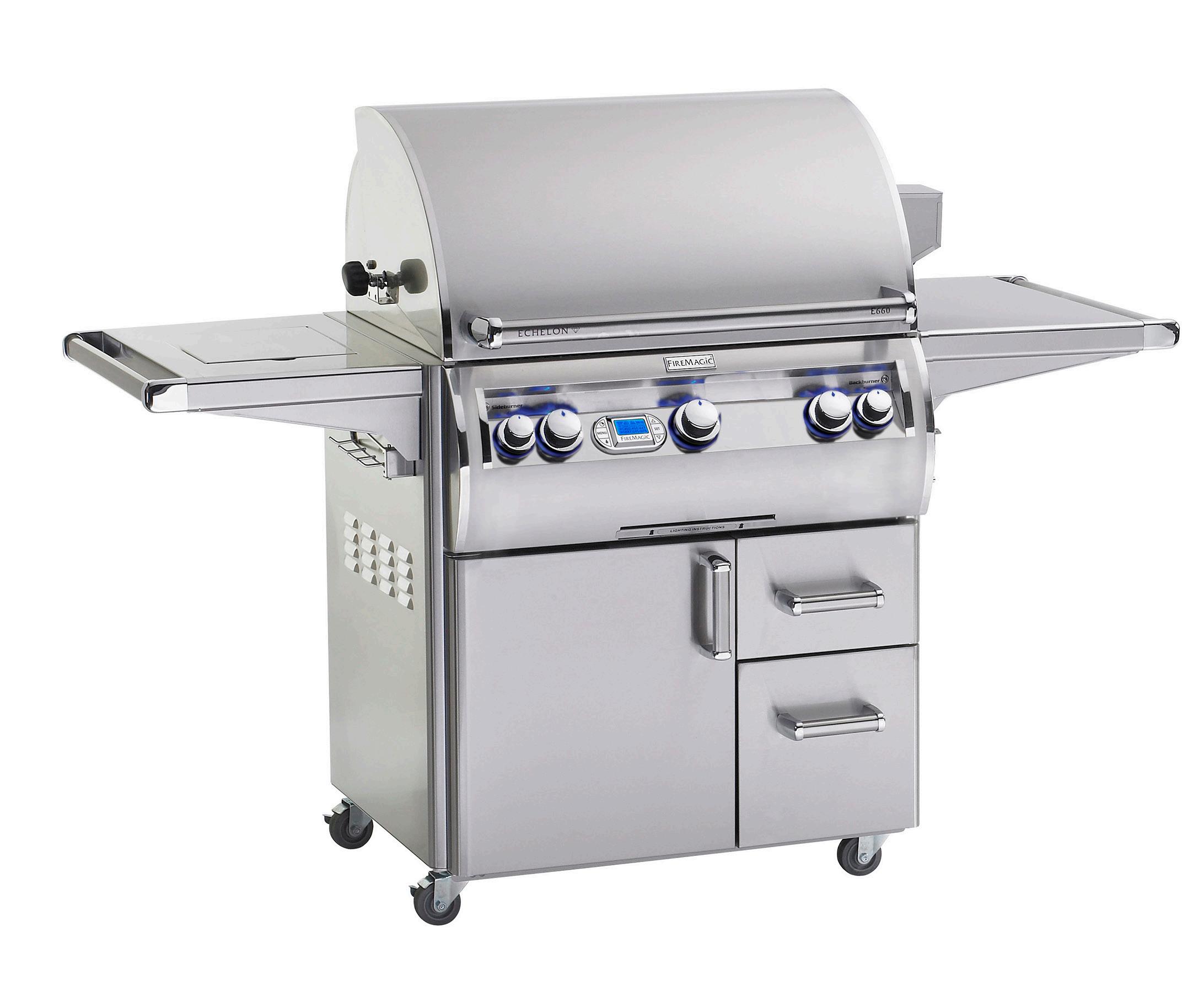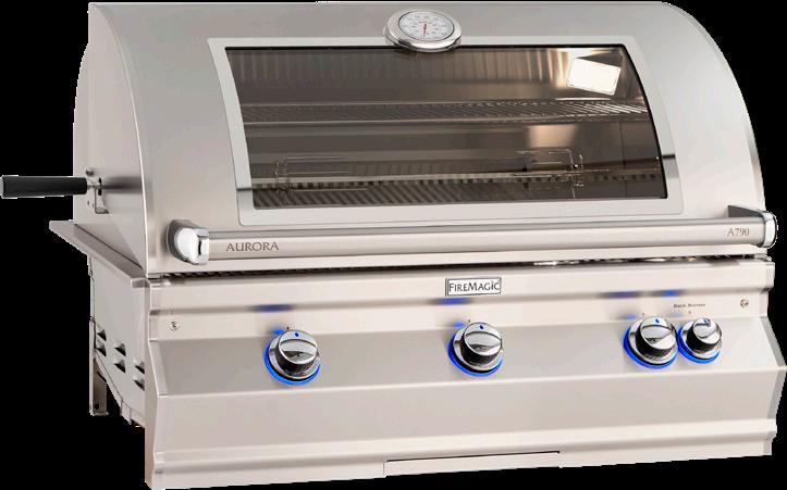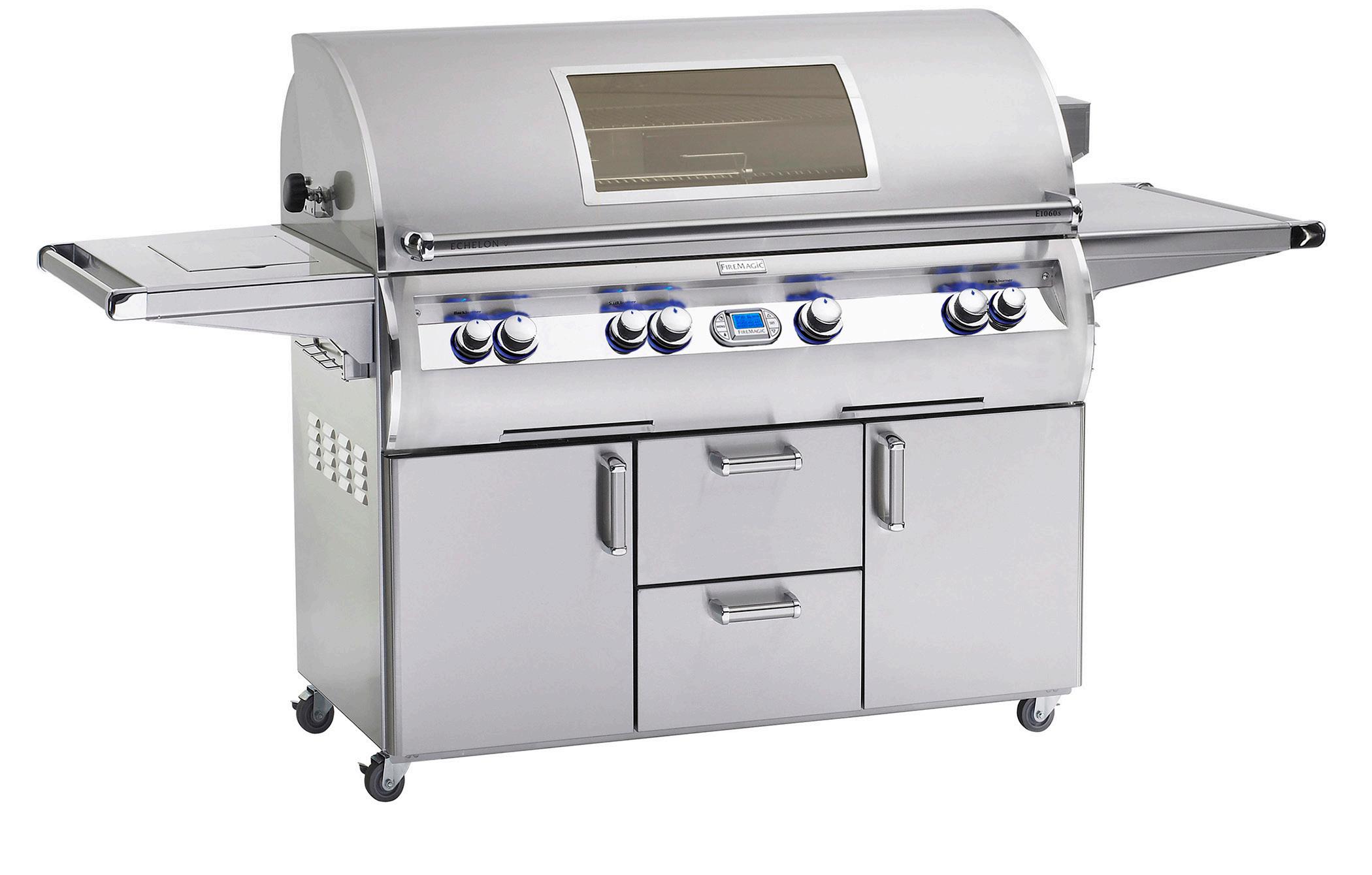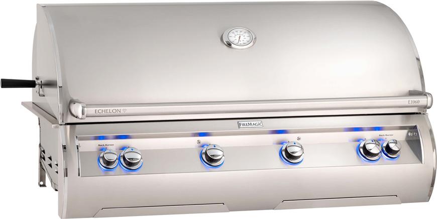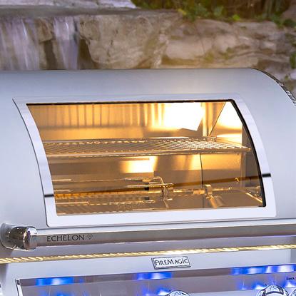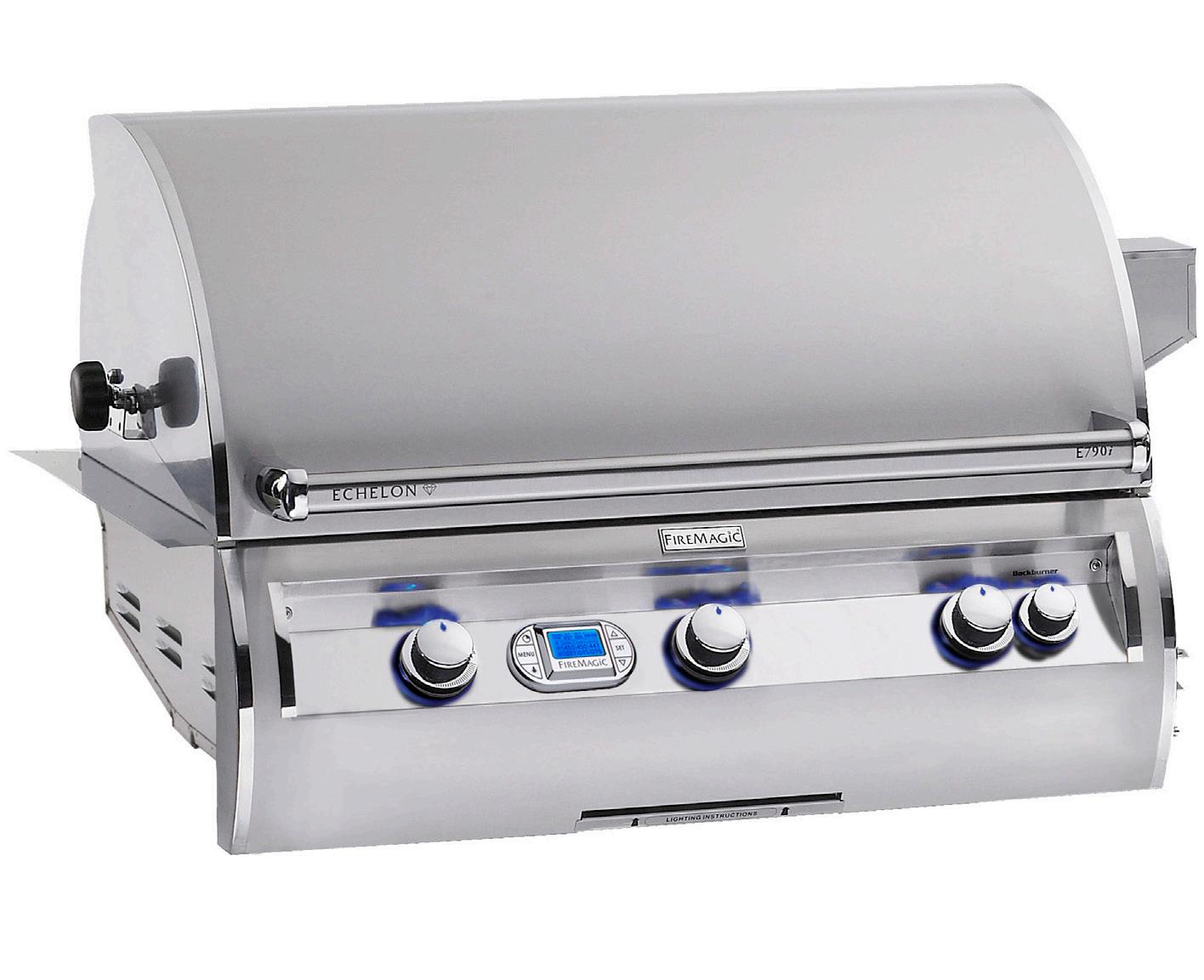 When only the best will do, our top of the line Fire Magic® Echelon Diamond combines the ultimate in performance, beauty, and innovation. With sleek lines, a unique contoured face, stateof-the-art features such as hot surface ignition, blue back-lit knobs, and an optional Magic View Window, Echelon Diamond defines luxury in grilling.