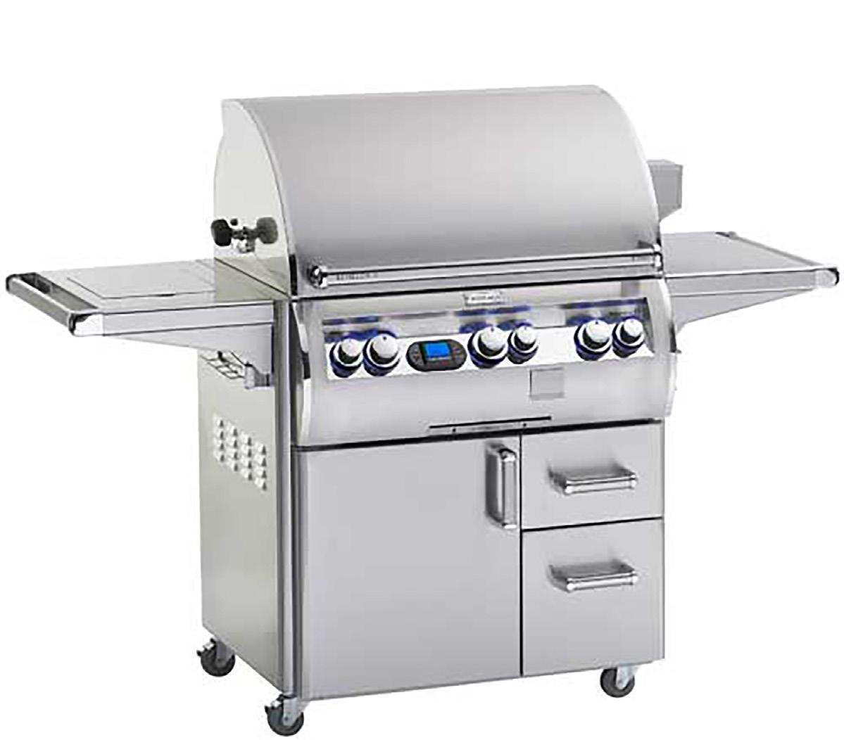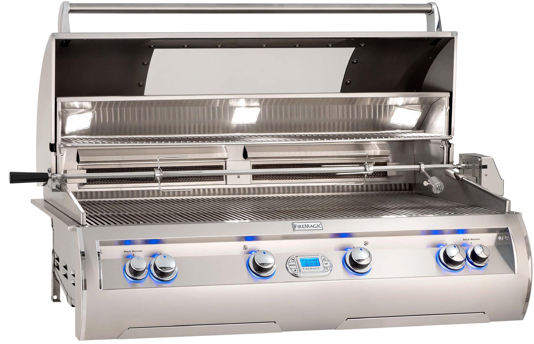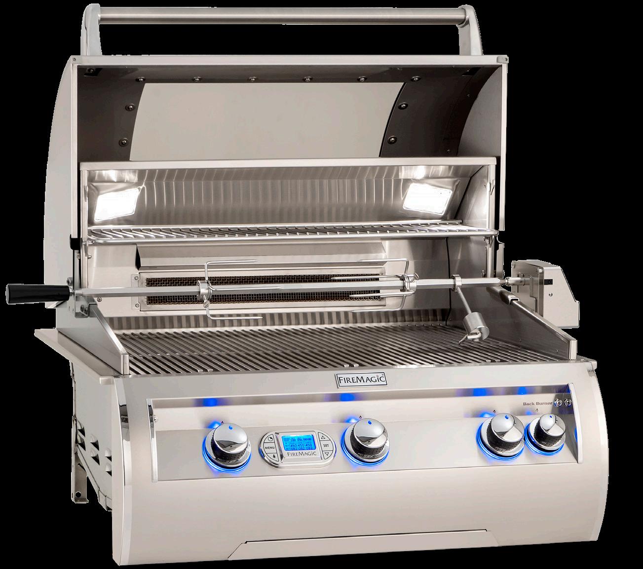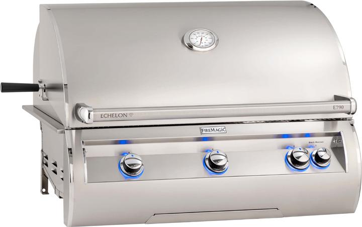 When only the best will do, our top of the line Fire Magic® Echelon Diamond combines the ultimate in performance, beauty, and innovation. With sleek lines, a unique contoured face, stateof-the-art features such as hot surface ignition, blue back-lit knobs, and an optional Magic View Window, Echelon Diamond defines luxury in grilling.