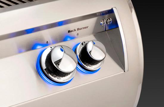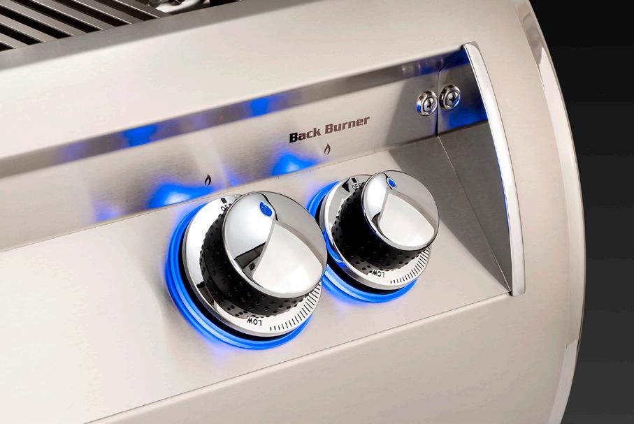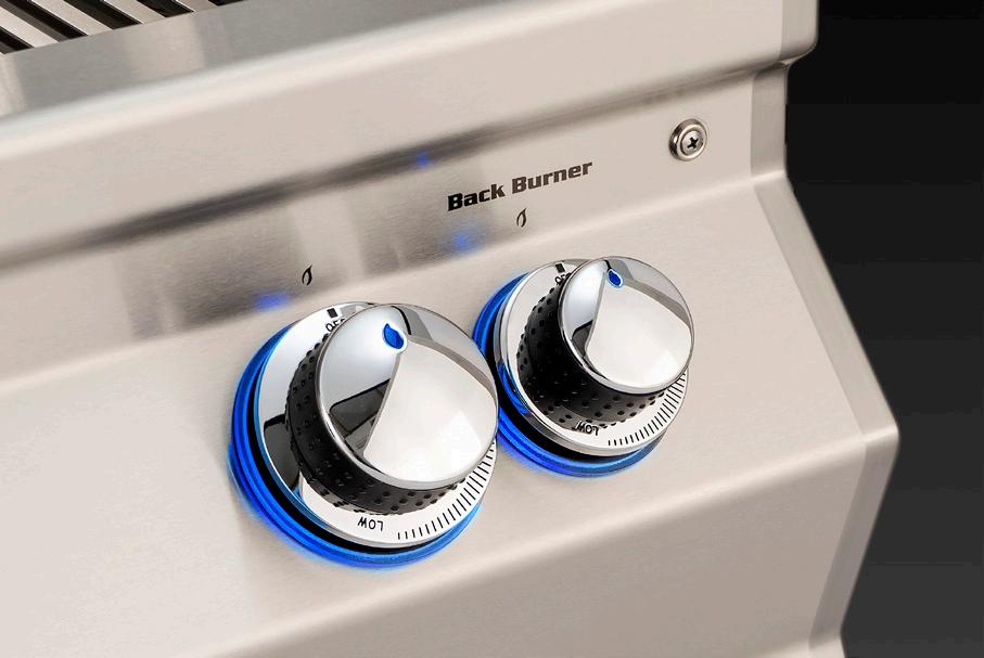 Smooth, seamless lines with polished highlights that feature back-lit knobs (at 41°) with comfort touch grips and flame icons for convenience.